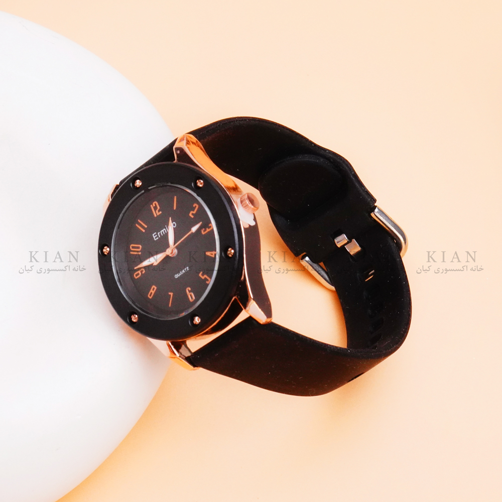ساعت صفحه گرد ، ساعت مچی مشکی گرد نگین دار