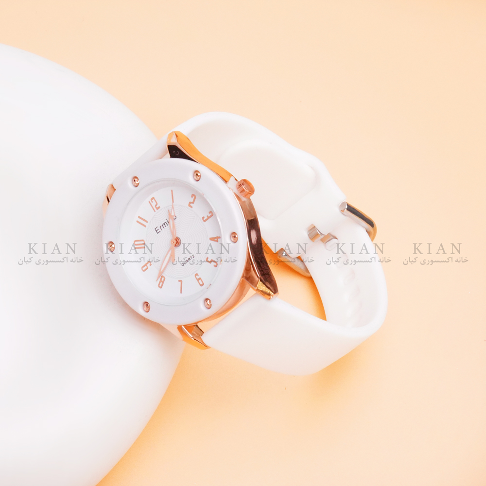 ساعت صفحه گرد ، ساعت مچی سفید گرد نگین دار