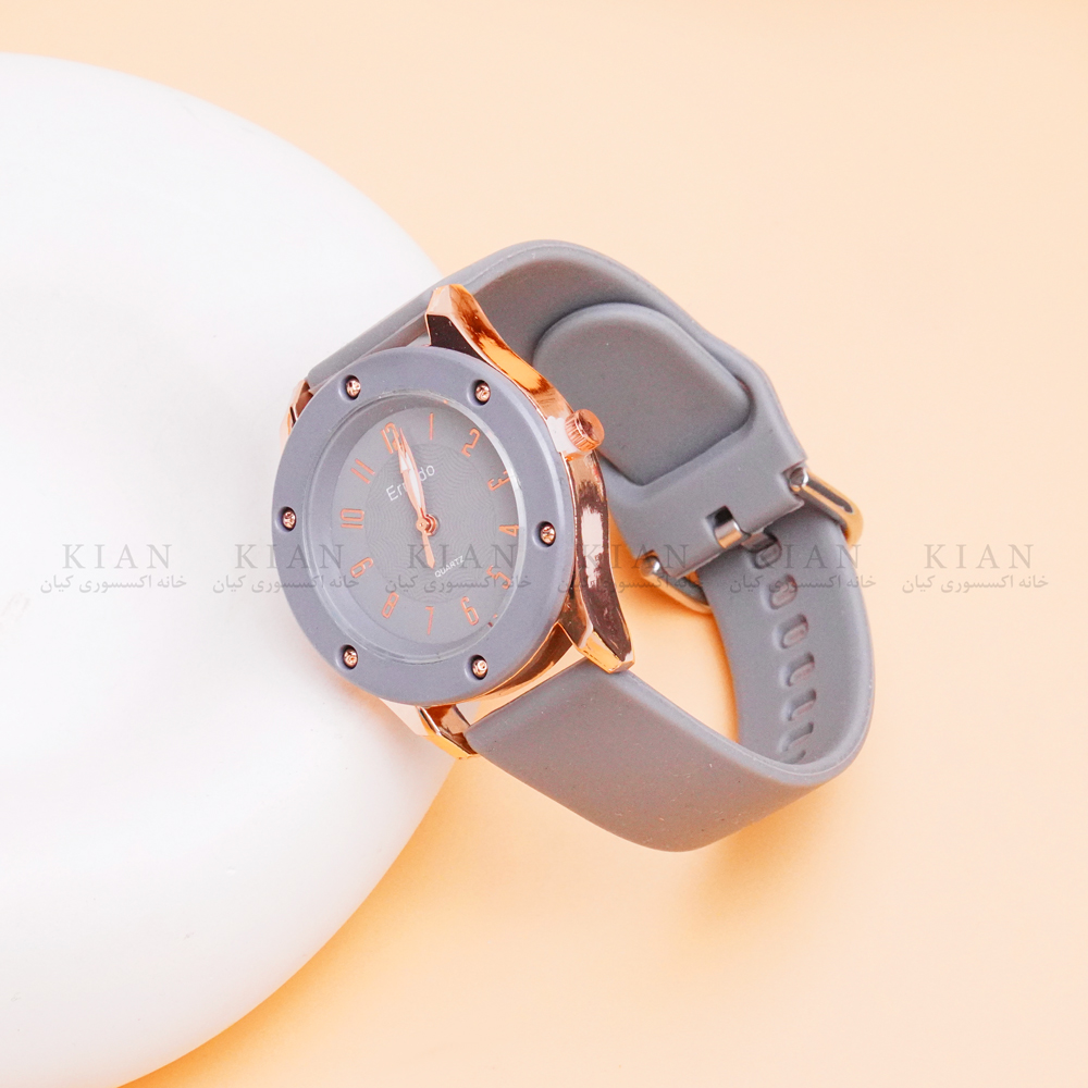 ساعت صفحه گرد ، ساعت مچی طوسی گرد نگین دار