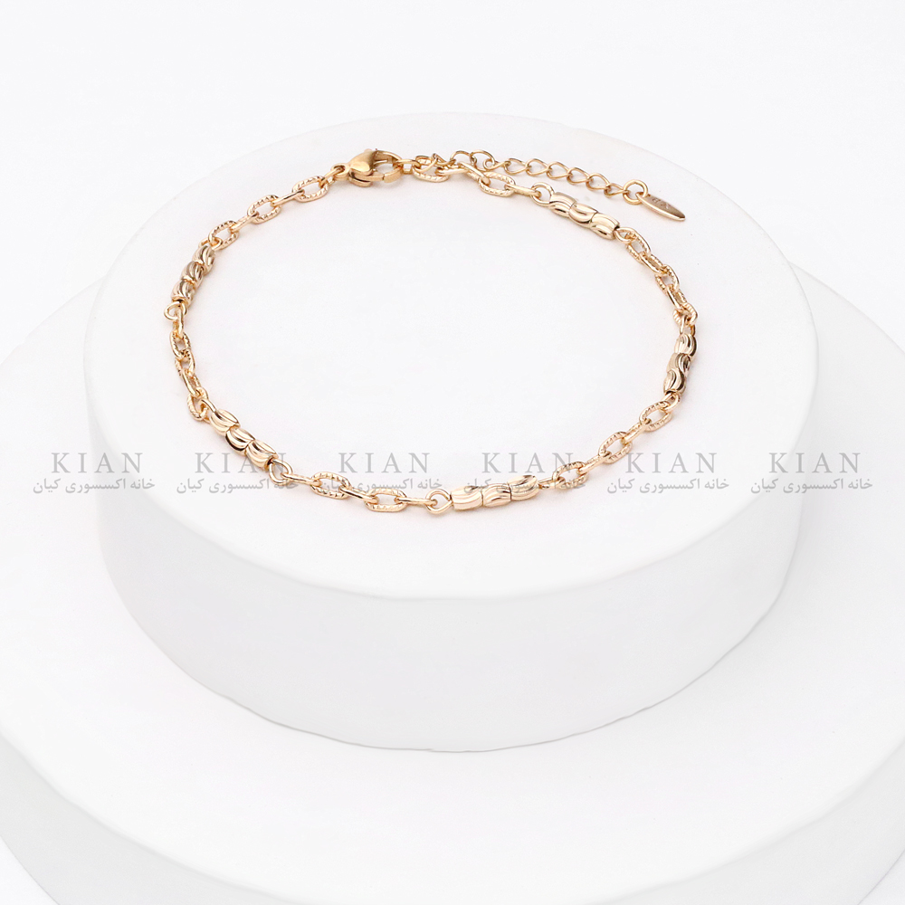 تراشهای ظریف روی حلقههای زنجیر، باعث درخشش چندبرابری این پابند شده و آن را به گزینهای ایدهآل برای استایلهای تابستانی، ساحلی، روزمره و حتی مهمانیهای دوستانه تبدیل کرده است. رنگ طلایی گرم و براق نیز به استایل شما حس لوکس و زنانه میدهد و با هر نوع کفش یا صندل بهراحتی ست میشود.