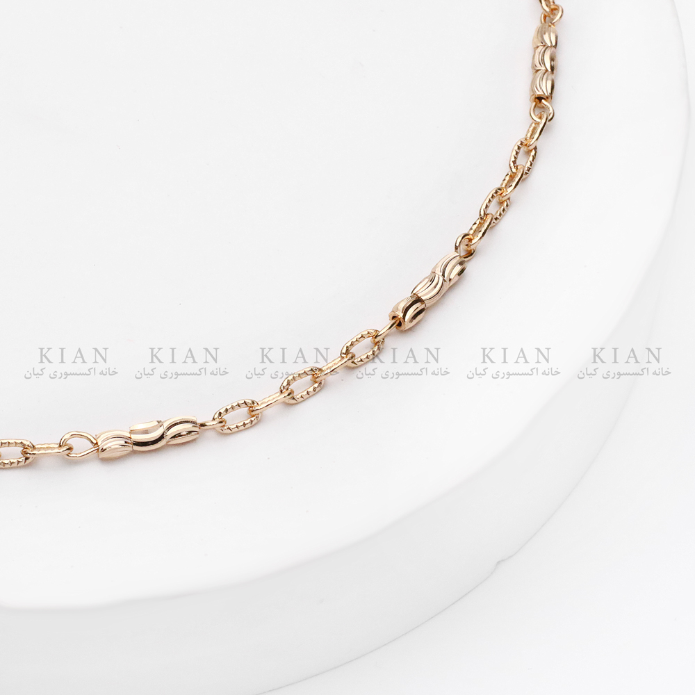 پابند طلایی زنجیر تراشخورده یکی از شیکترین و جذابترین مدلهای مجموعه زیورآلات خانه اکسسوری کیان است. طراحی این پابند با زنجیرهای ریز و تراشخورده، جلوهای براق، چشمگیر و کاملاً فشن ایجاد میکند مدلی که با هر حرکت پا، نور را بهزیبایی منعکس کرده و استایل شما را خاصتر میسازد.