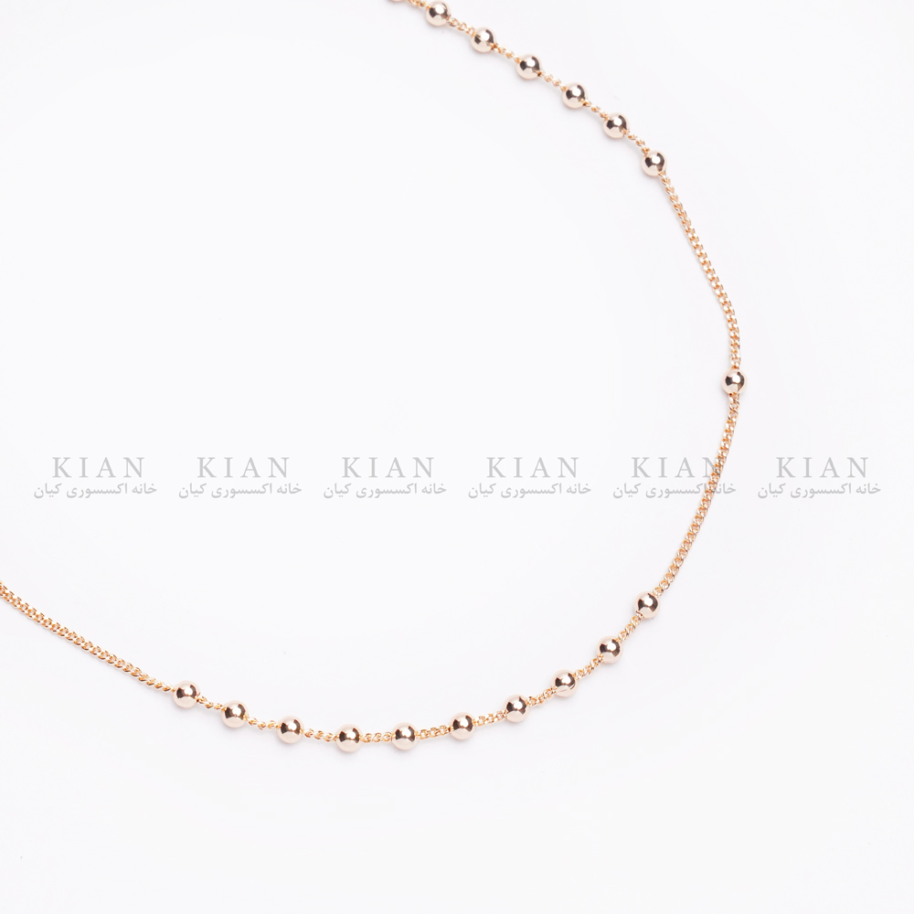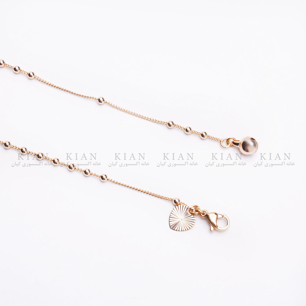 پابند طلایی گوی از خانه اکسسوری کیان، با طراحی ظریف و زنانه، ترکیبی از زنجیر ظریف آبکاری شده با طلای براق و مهره های کروی کوچک را ارائه می دهد که جلوه ای خاص و چشم نواز به مچ پا می بخشند.