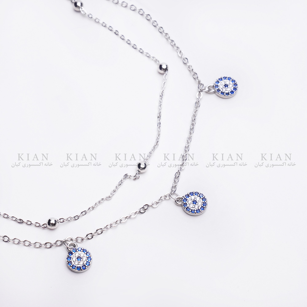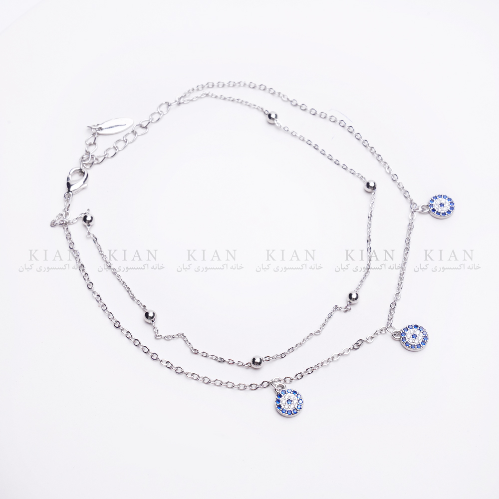 طراحی دو رج با ترکیب چشم نظر و توپ های نقره ای، رنگ ثابت و ضد حساسیت، زنجیر قابل تنظیم برای سایز دلخواه از ویژگی های منحصربفرد این پابند می باشد و مناسب استفاده روزمره، مهمانی یا ساحل است.