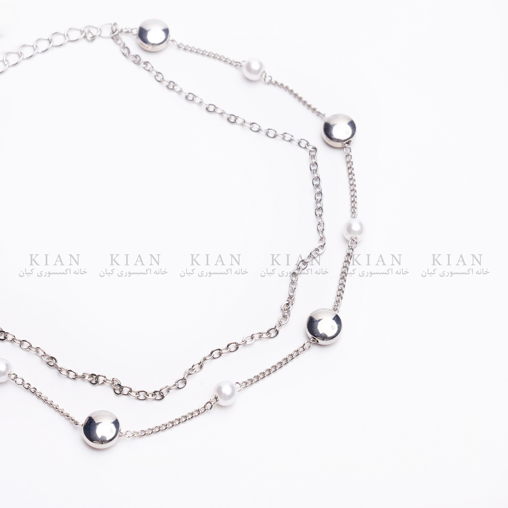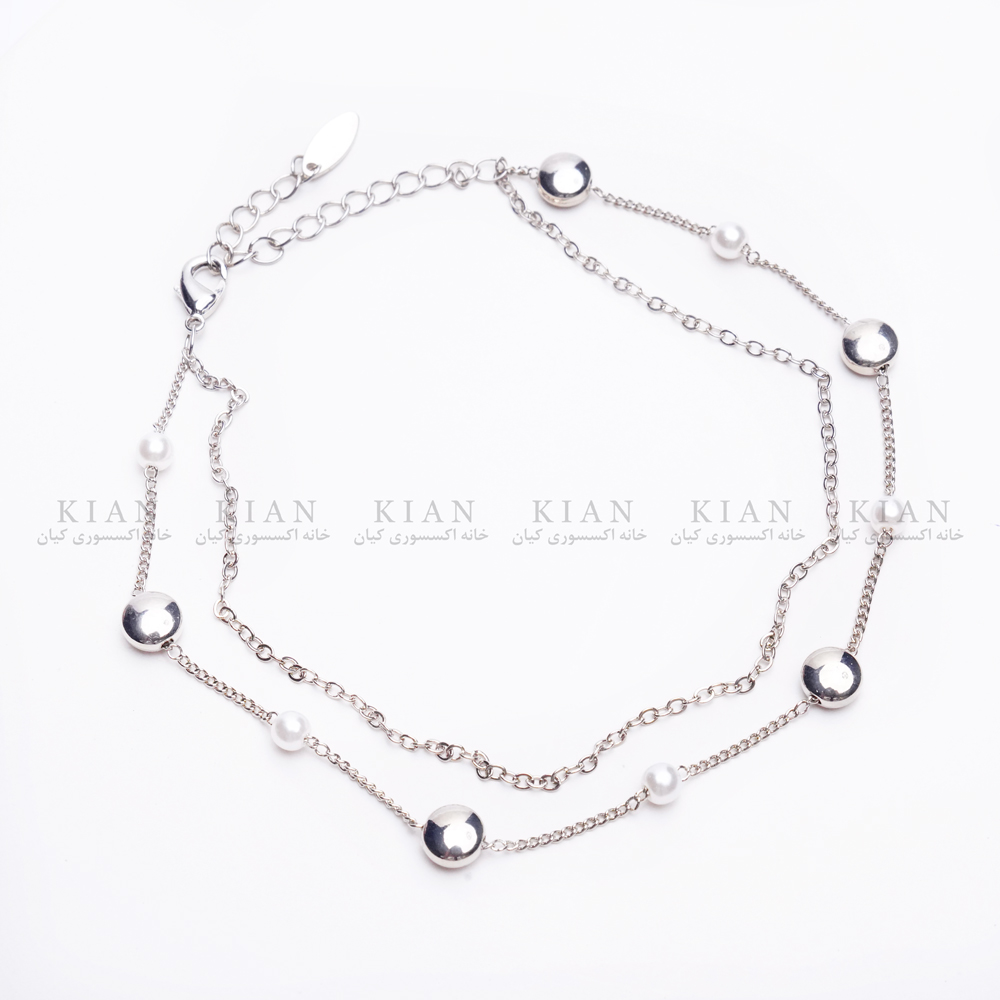 طراحی دو رج با ترکیب مروارید و دایره های نقره ای، رنگ ثابت و ضد حساسیت، زنجیر قابل تنظیم برای سایز دلخواه از ویژگی های منحصربفرد این پابند می باشد و مناسب استفاده روزمره، مهمانی یا ساحل است.
