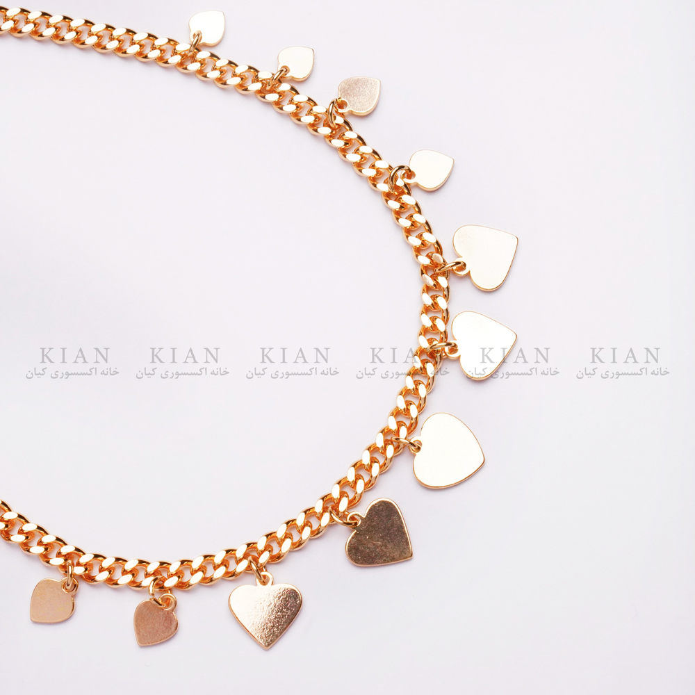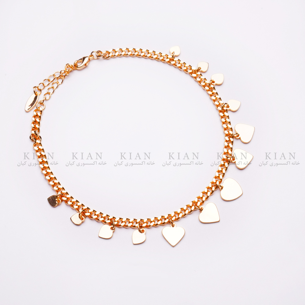 پابند آویز قلبی طلایی با آویزهای ظریف قلبی، نمایانگر تلاقی زیبایی کلاسیک و جذابیت مدرن است. حرکات آویزهای قلبی هنگام راه رفتن، جلوه ای زنانه و دل نشین به استایل شما می بخشند.
