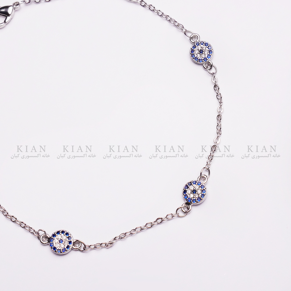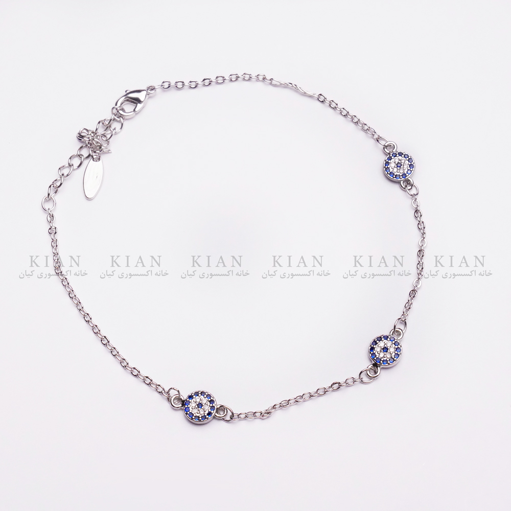 پابند نقره ای چشم نظر با طراحی منحصربه فرد از نماد چشم نظر ظریف و درخشان، انتخابی ایده آل برای بانوانی ست که به دنبال استایلی چشمگیر و خاص هستند. رنگ نقره ای براق این مدل، جلوه ای مینیمال و در عین حال لوکس به پاهای شما می بخشد.