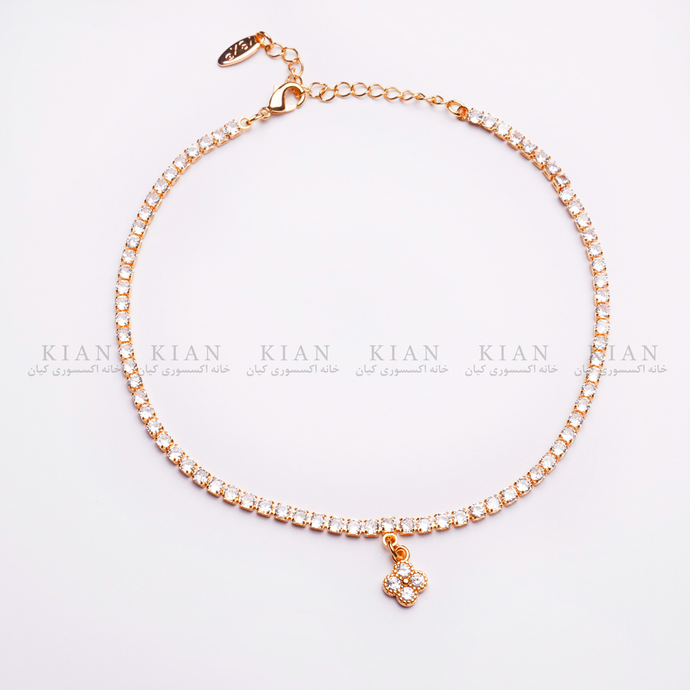 پابند زنجیر تنیسی ونکلیف طلایی با نگین های ریز و درخشان در کنار آویز نمادین ونکلیف، تلفیقی از زیبایی کلاسیک و طراحی مدرن را به نمایش می گذارد. این مدل با درخشندگی چشم گیر و فرم ظریف، به راحتی استایل شما را در مهمانی ها و موقعیت های خاص کامل می کند.
