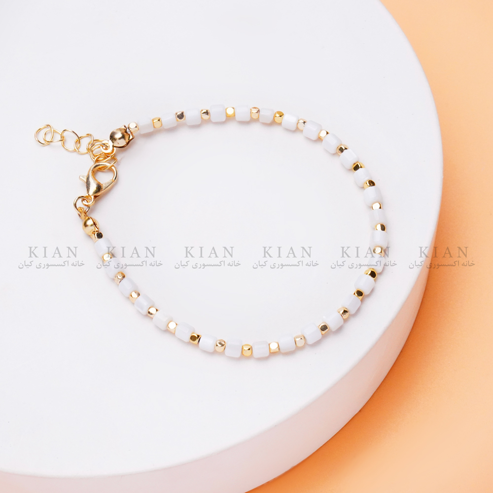 دستبند مهره ای با طراحی ظریف و ترکیب مهره های براق، انتخابی شیک و همیشه مد برای استایل های زنانه و دخترانه است. این دستبند هم برای استفاده روزمره و هم برای مهمانی ها مناسب بوده و به راحتی با انواع اکسسوری های دیگر ست می شود. این مدل خاص و پرطرفدار را می توانید از خانه اکسسوری کیان با کیفیت بالا و قیمت مناسب تهیه کنید.