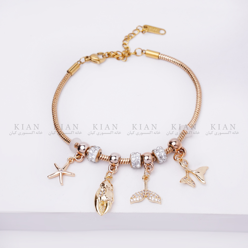 دستبند آویزدار دم وال طلایی از برند خانه اکسسوری کیان، یکی از طراحی‌های خاص و الهام‌گرفته از دریاست که با جلوه‌ای ظریف و مدرن، استایلی منحصربه‌فرد برای شما می‌سازد. آویز دم وال نمادی از آزادی، آرامش و انرژی مثبت است که با حرکت دست، درخشش و زیبایی آن دوچندان می‌شود.