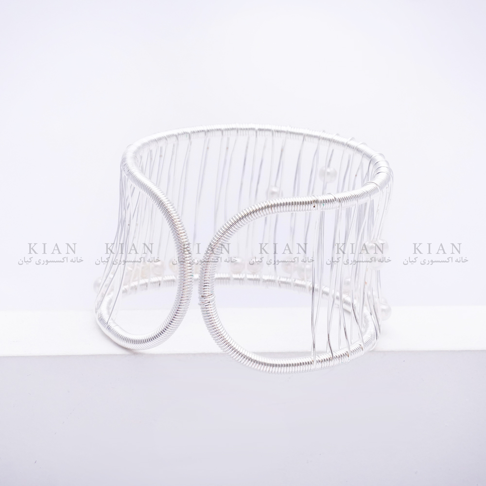 دستبند بنگل توری نقره ای مرواریدی