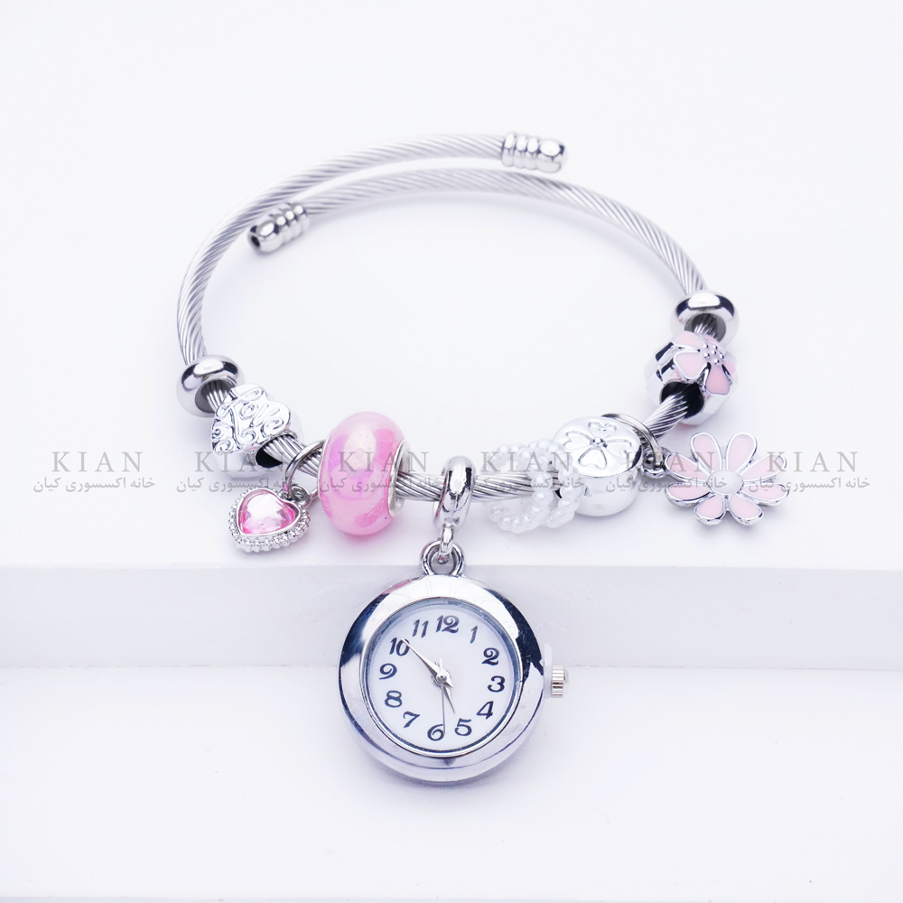 دستبند بنگل ساعتدار بابونه و قلب صورتی با طراحی خاص ترکیب بند بنگل و صفحه ساعت طرح گل بابونه و قلب، انتخابی شیک و فانتزی برای استایل های دخترانه است. رنگ صورتی قلب جلوه ای متفاوت و آرامش بخش ایجاد کرده و این دستبند را به گزینه ای جذاب برای استفاده روزمره و هدیه ای خاص تبدیل می کند. این مدل زیبا و پرطرفدار را می توانید از خانه اکسسوری کیان با کیفیت بالا و قیمت مناسب تهیه کنید.