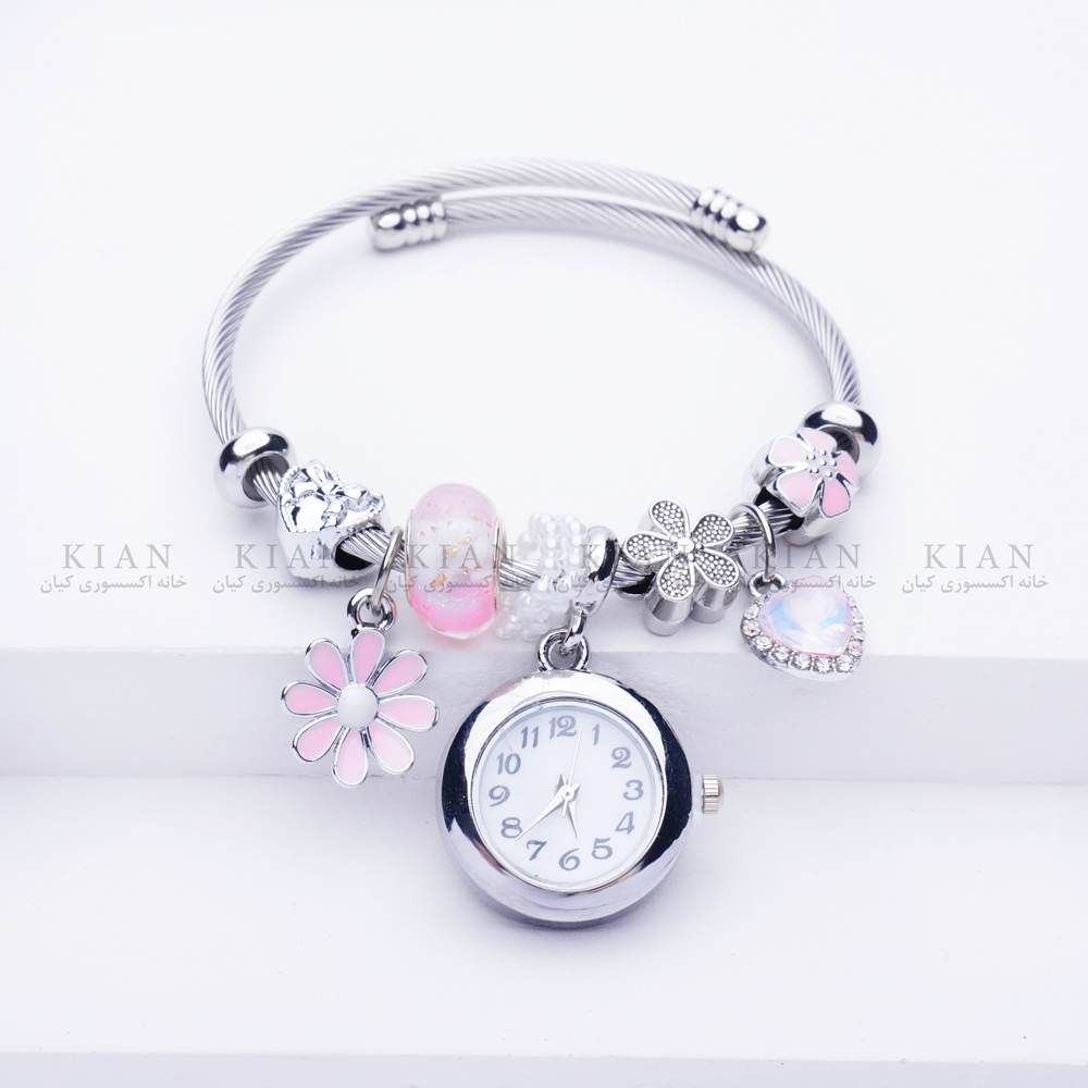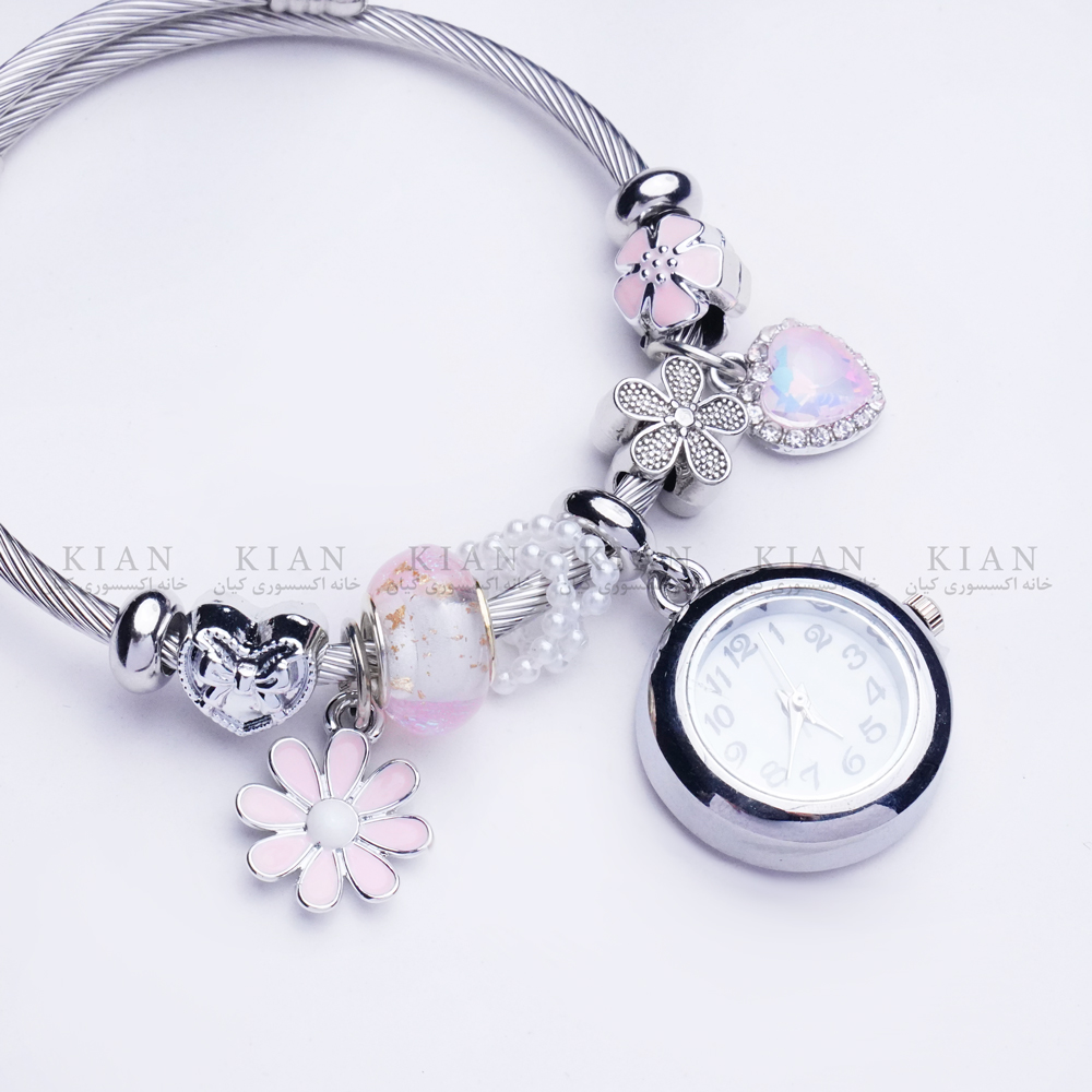 دستبند بنگل ساعتدار صورتی با طراحی خاص و ترکیب بند بنگل فلزی و صفحه ساعت شیک، انتخابی مدرن و متفاوت برای استایل های دخترانه است. رنگ صورتی جذاب صفحه جلوه ای خاص و فانتزی ایجاد کرده و این دستبند را به گزینه ای عالی برای استفاده روزمره یا هدیه ای خاص تبدیل می کند. این مدل زیبا و پرطرفدار را می توانید از خانه اکسسوری کیان با کیفیت بالا و قیمت مناسب تهیه کنید.