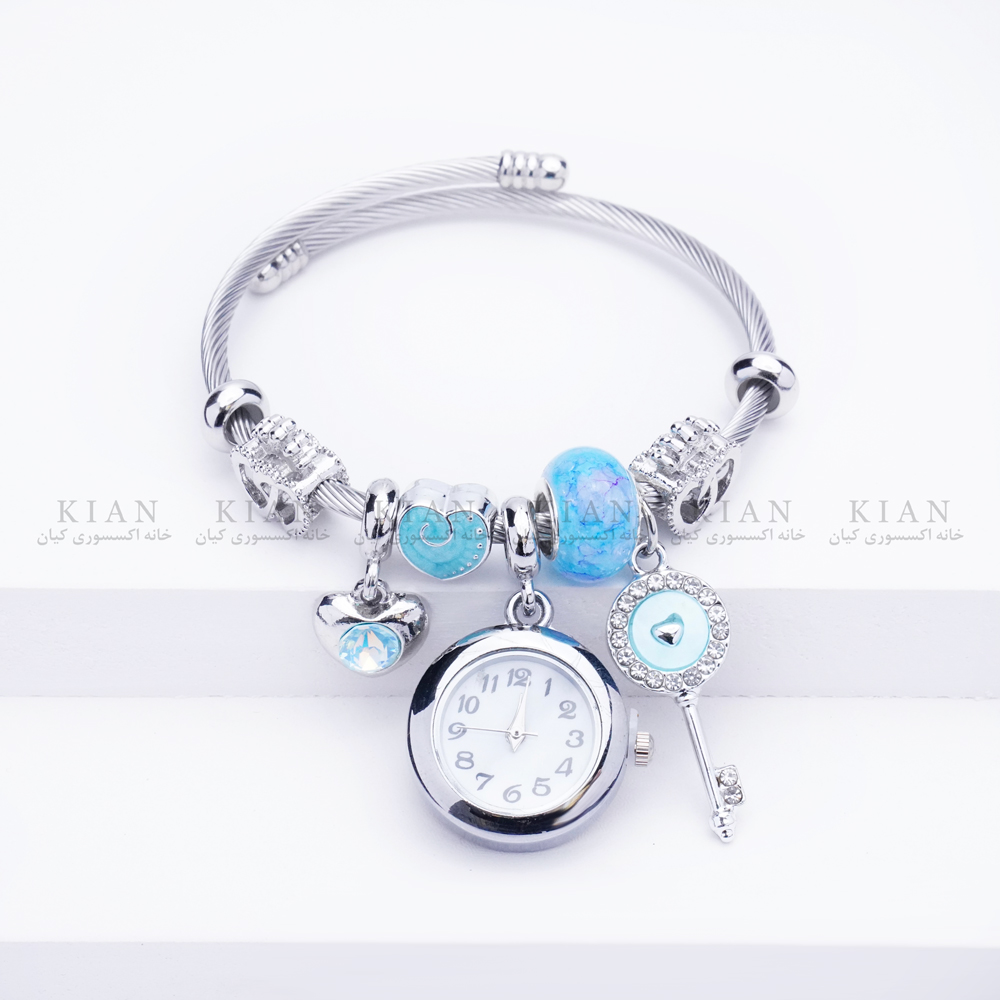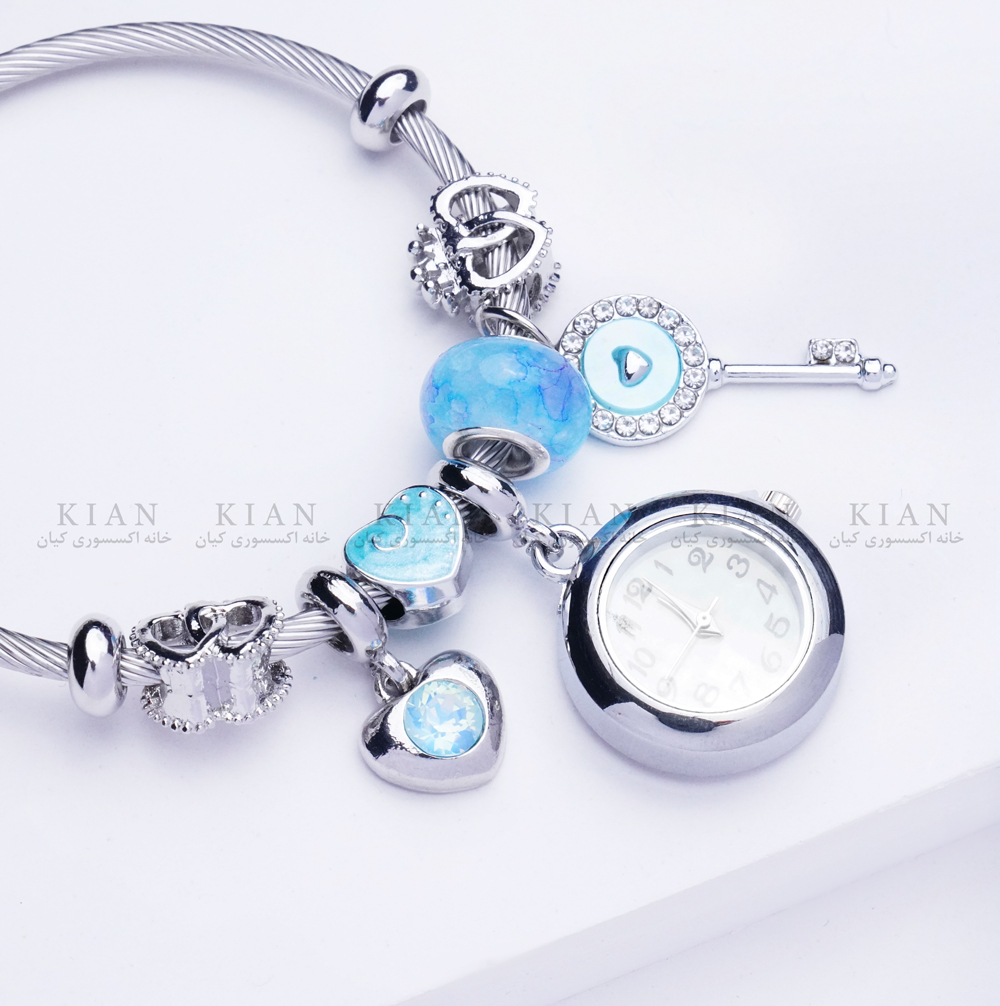دستبند بنگل ساعتدار قلب و کلید