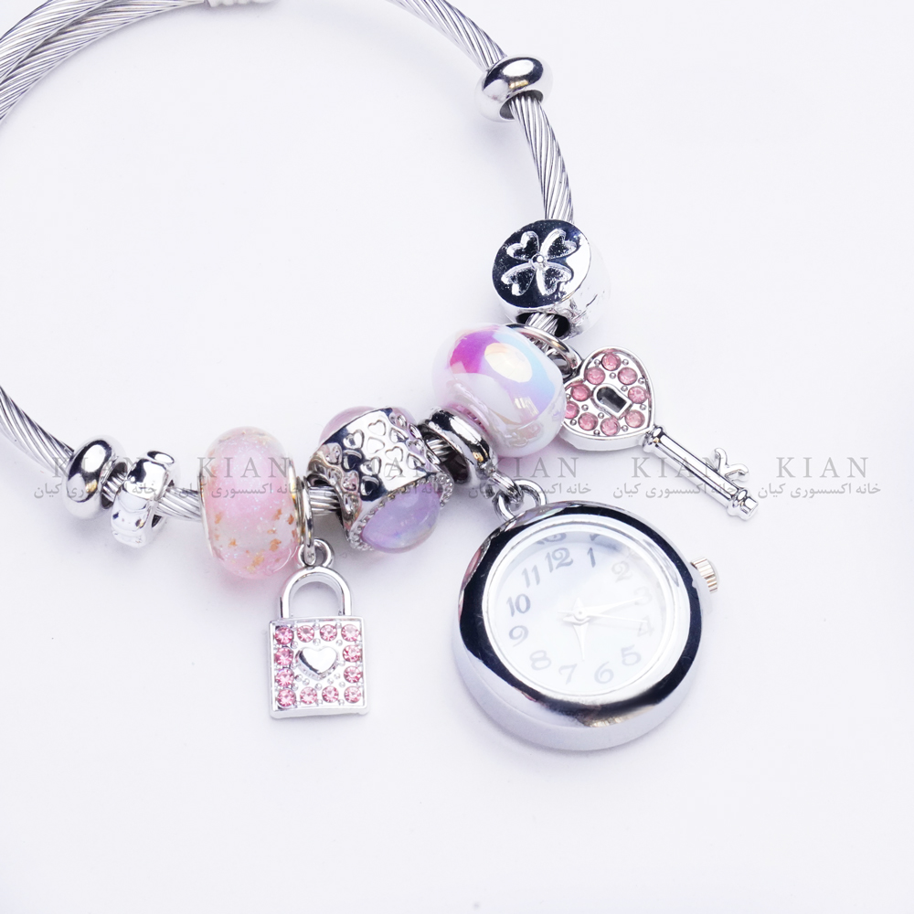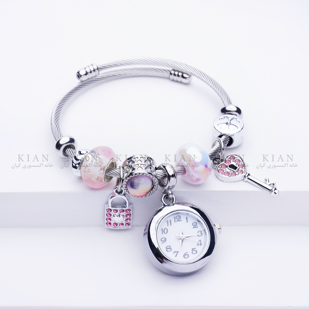 دستبند بنگل ساعتدار کلید با طراحی الهام گرفته از نماد کلید، انتخابی خاص و متفاوت برای استایل های دخترانه است. صفحه ساعت با طرح کلید صورتی جلوه ای شاد و فانتزی ایجاد کرده و در کنار بند بنگل فلزی، ترکیبی مدرن و شیک را برای استایل شما می سازد. این مدل زیبا و پرطرفدار را می توانید از خانه اکسسوری کیان با کیفیت بالا و قیمت مناسب تهیه کنید.
