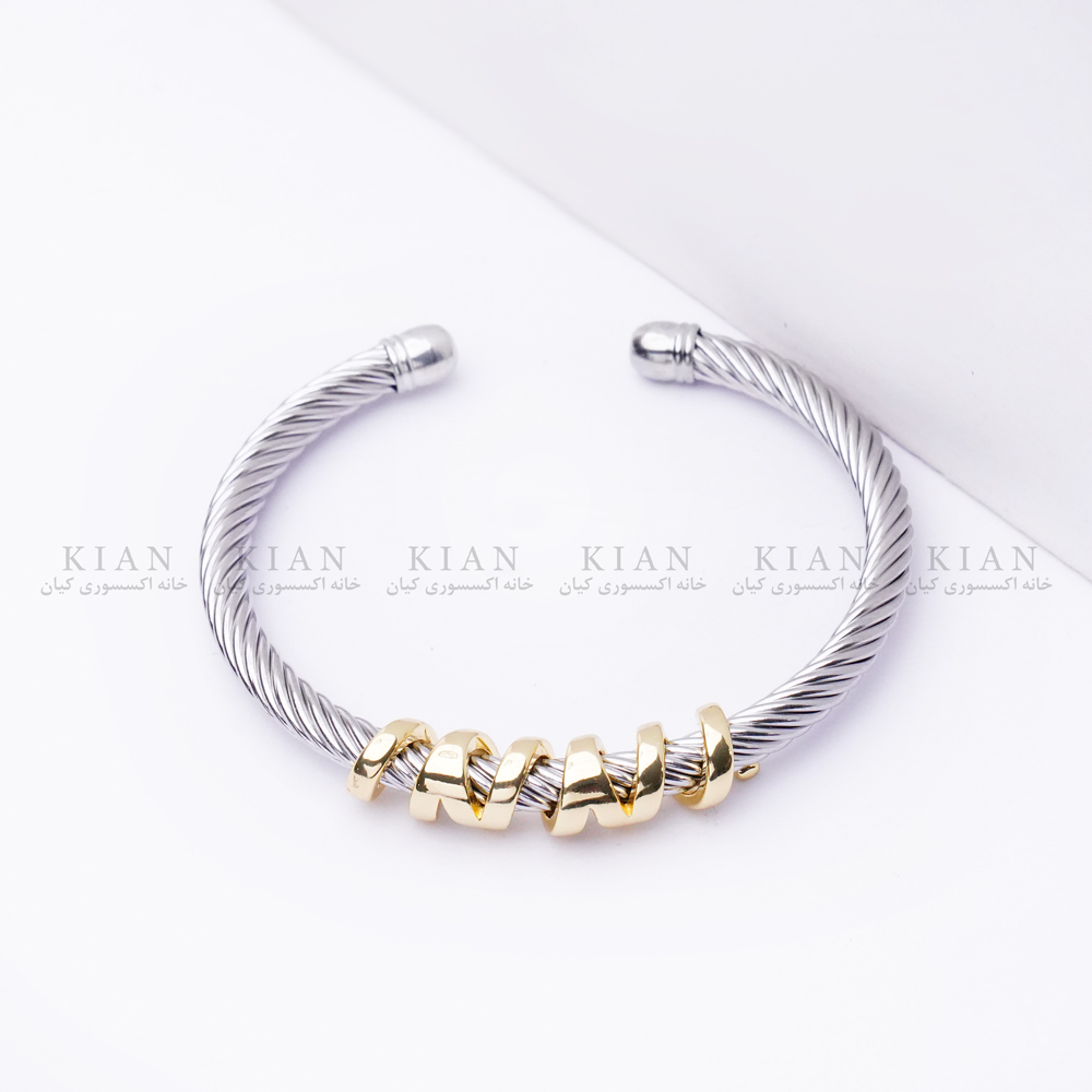 دستبند بنگل مارپیچ مدلی خاص و مدرن است که با طراحی مارپیچی و ترکیب رنگ نقرهای با مهرههای طلایی جلوهای شیک و متفاوت ایجاد میکند. فرم باز و انعطافپذیر این دستبند باعث میشود بهراحتی روی مچ قرار بگیرد و برای اکثر سایزها مناسب باشد.