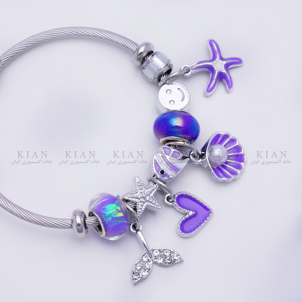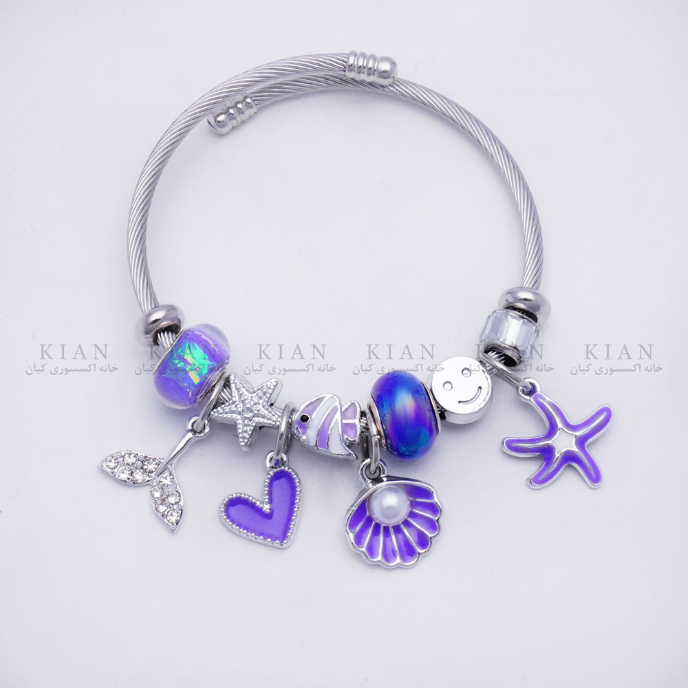 دستبند بنگل پاندورا صدف بنفش