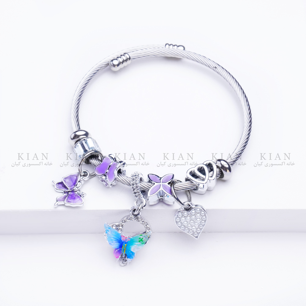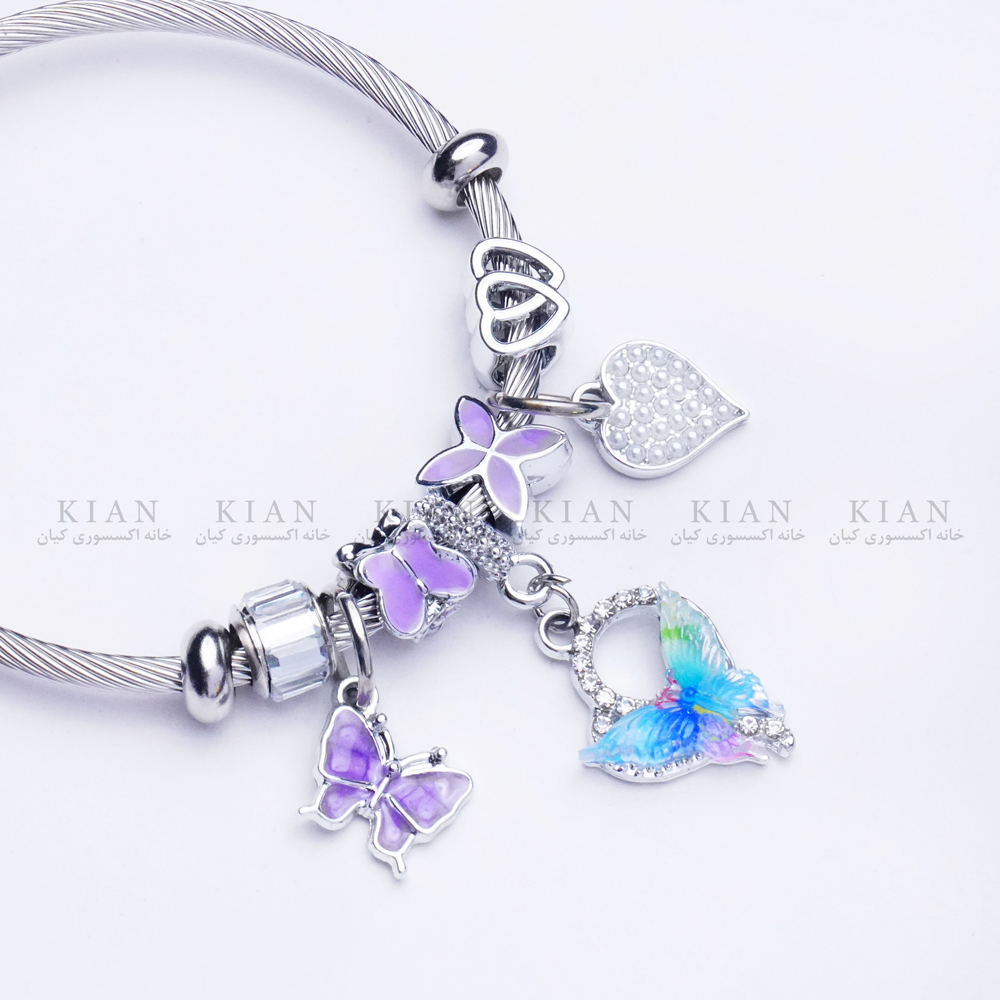 دستبند بنگل پاندورا پروانه آبی و بنفش
