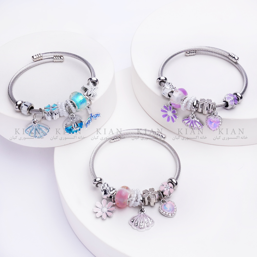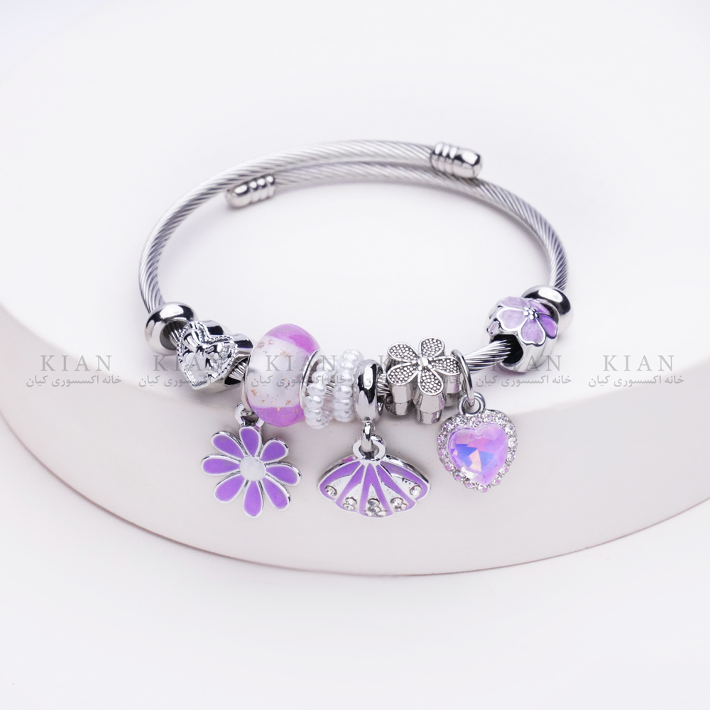 دستبند بنگل پاندورا 1 ، دستبند بنگل پاندورا صدف و بابونه بنفش