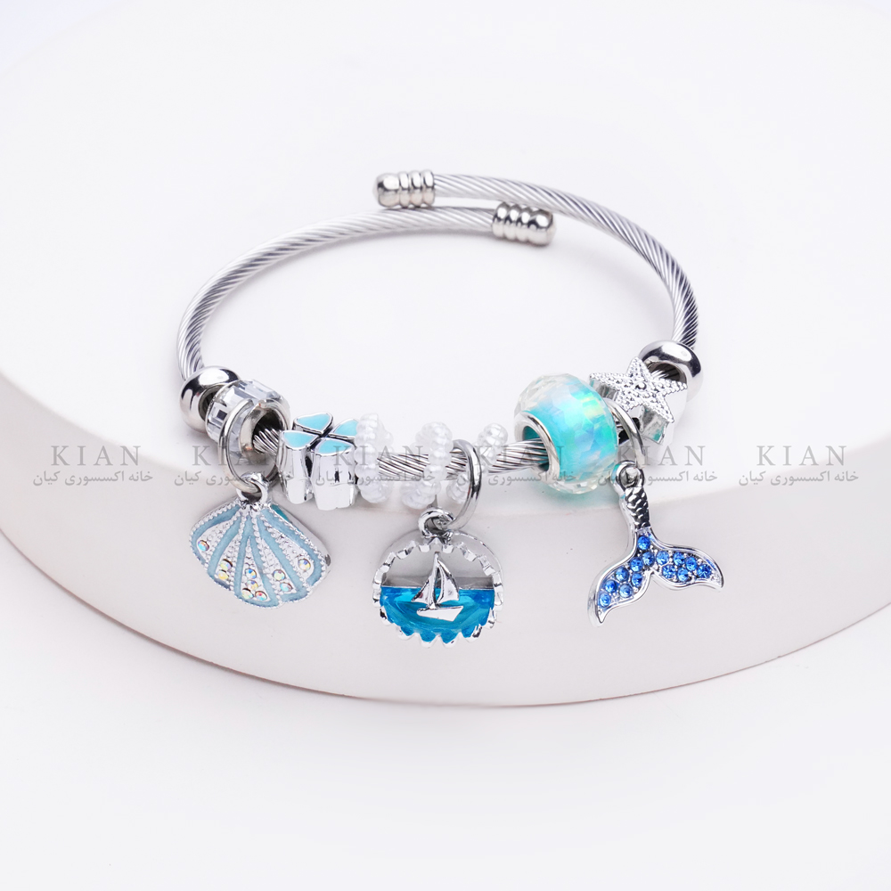 دستبند بنگل پاندورا 1 ، دستبند بنگل پاندورا صدف آبی نگین دار