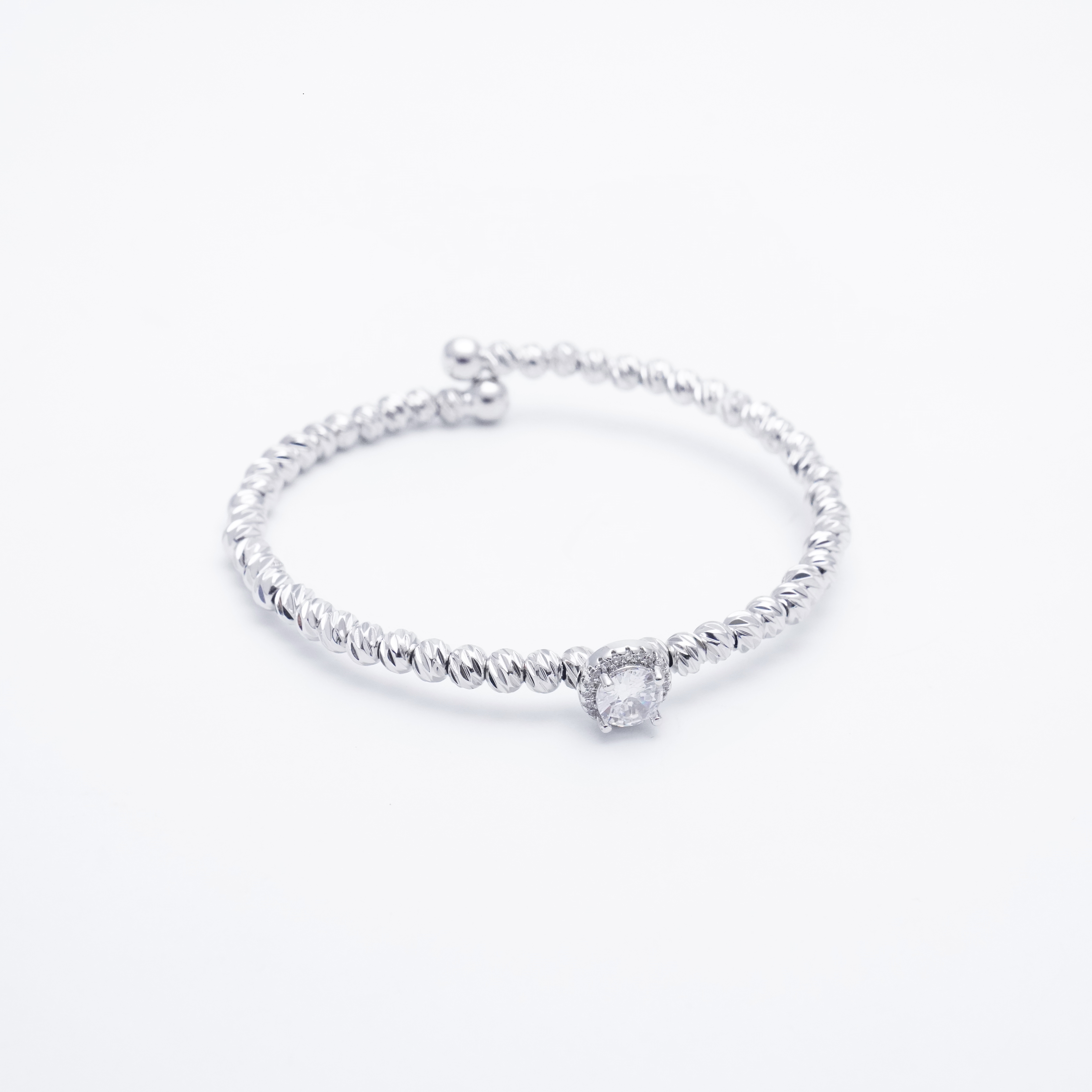 دستبند توپی تک نگین گرد سفید