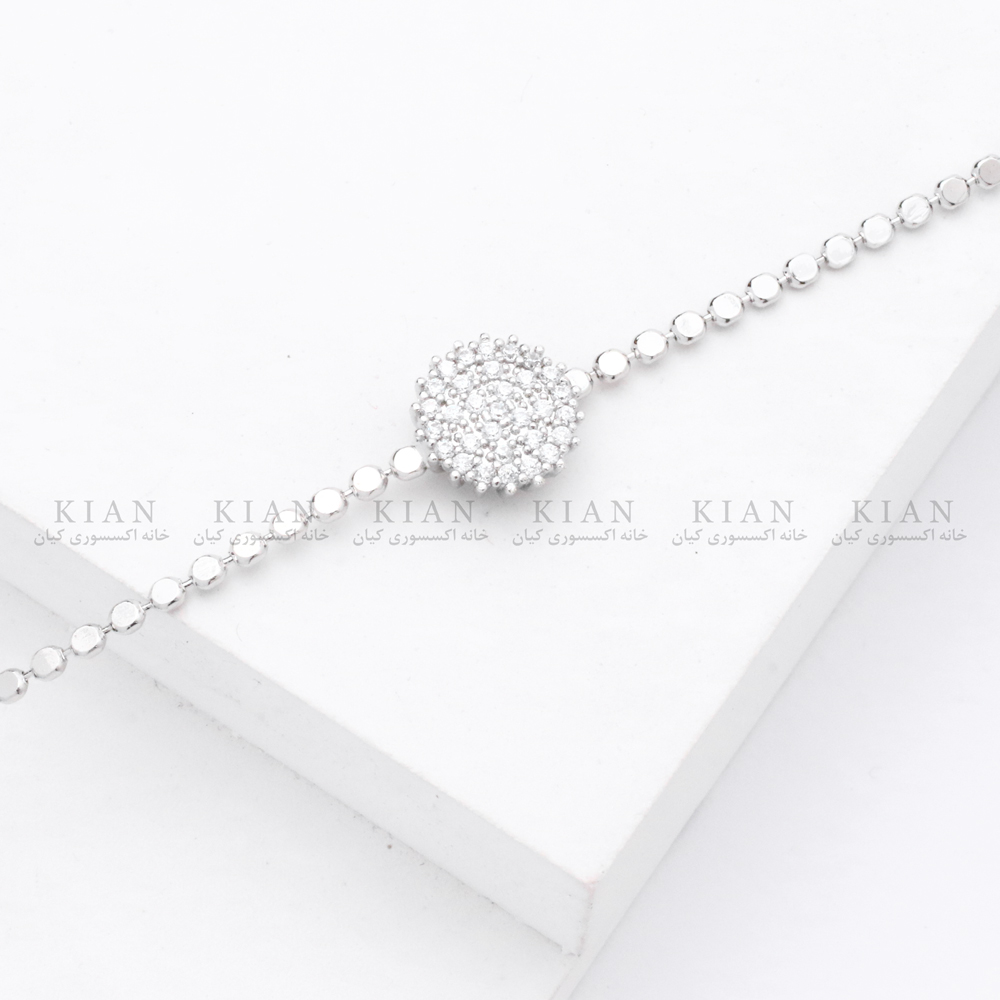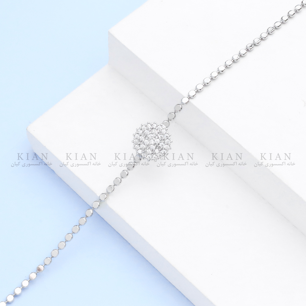 دستبند تک نگین توپی نقره ای یکی از زیباترین و ظریفترین مدلهای کلاسیک خانه اکسسوری کیان است؛ طراحیای ساده اما لوکس که با زنجیر نقره ای براق و پلاک توپی نگیندار، جلوهای درخشان و همیشهمد ایجاد میکند.