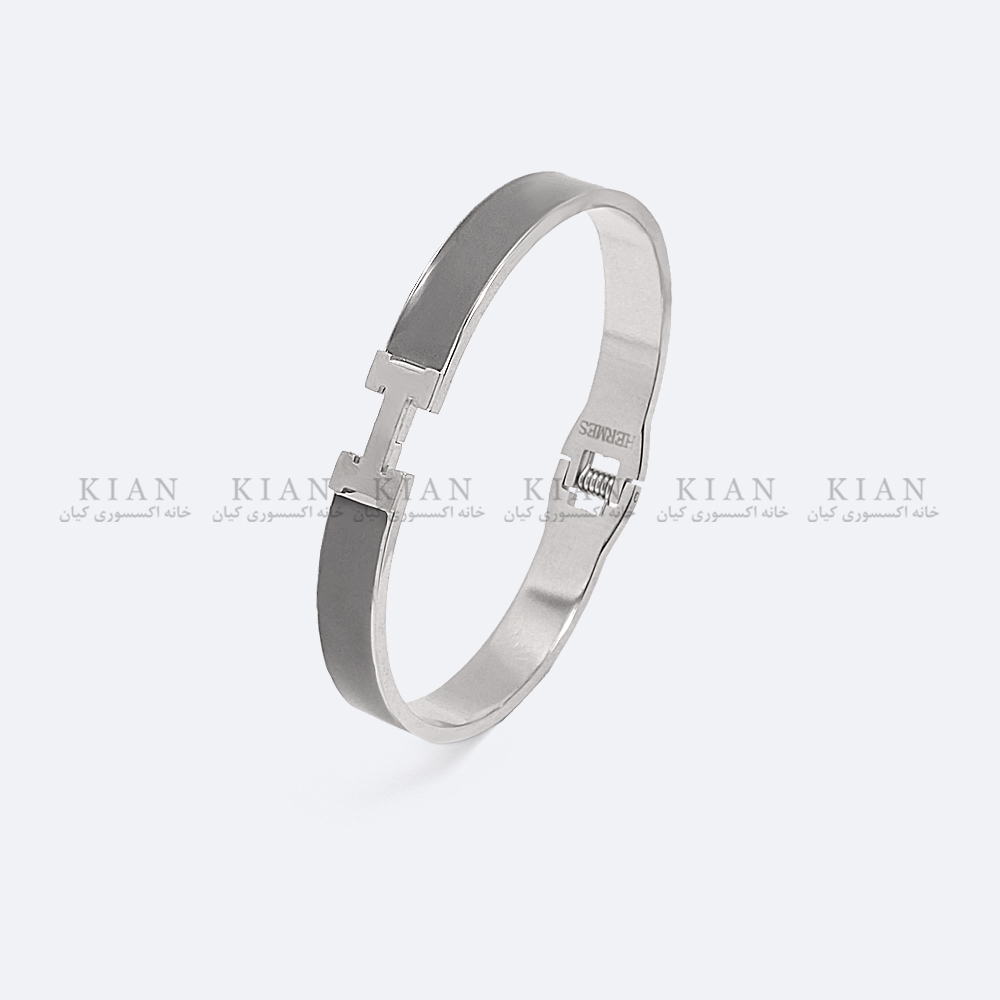 دستبند هرمس نقره ای طوسی پهن