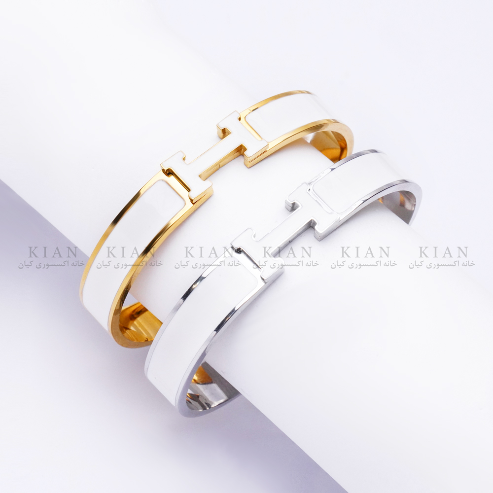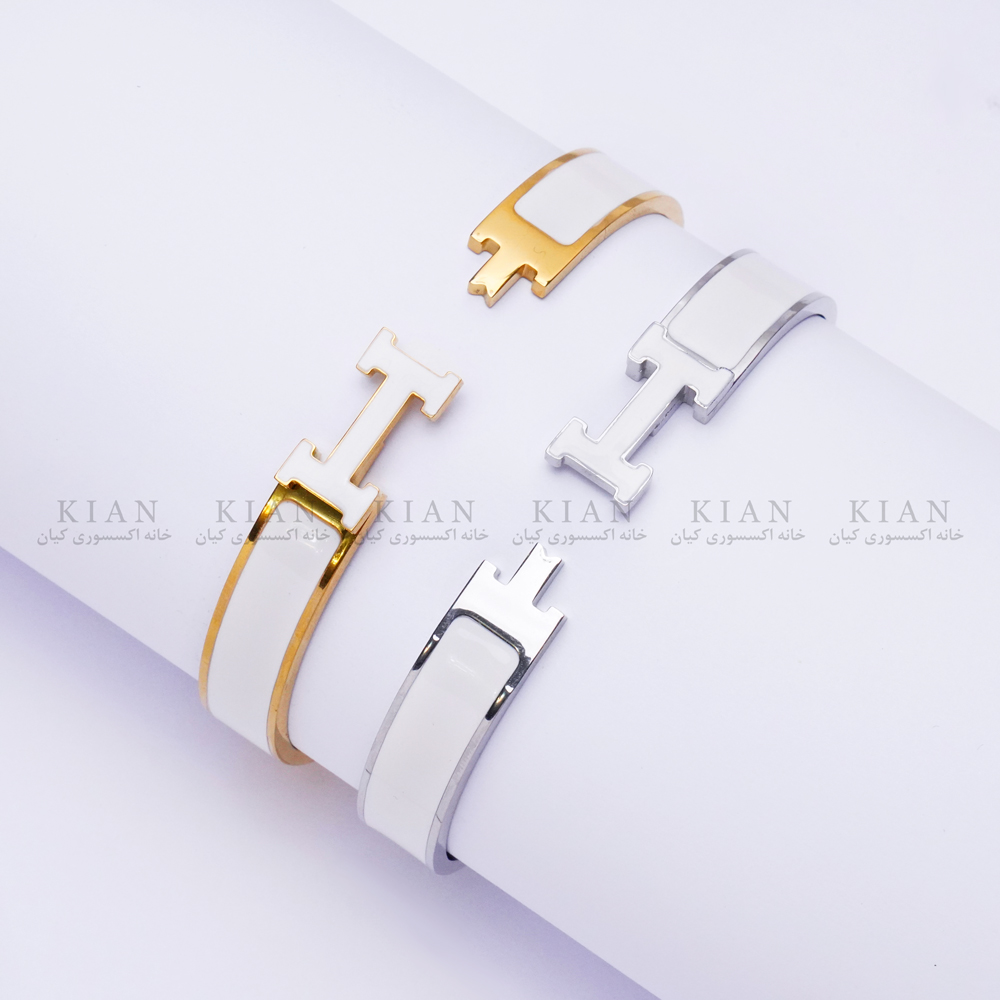 دستبند هرمس4 ، دستبند هرمس پهن نقره ای سفید