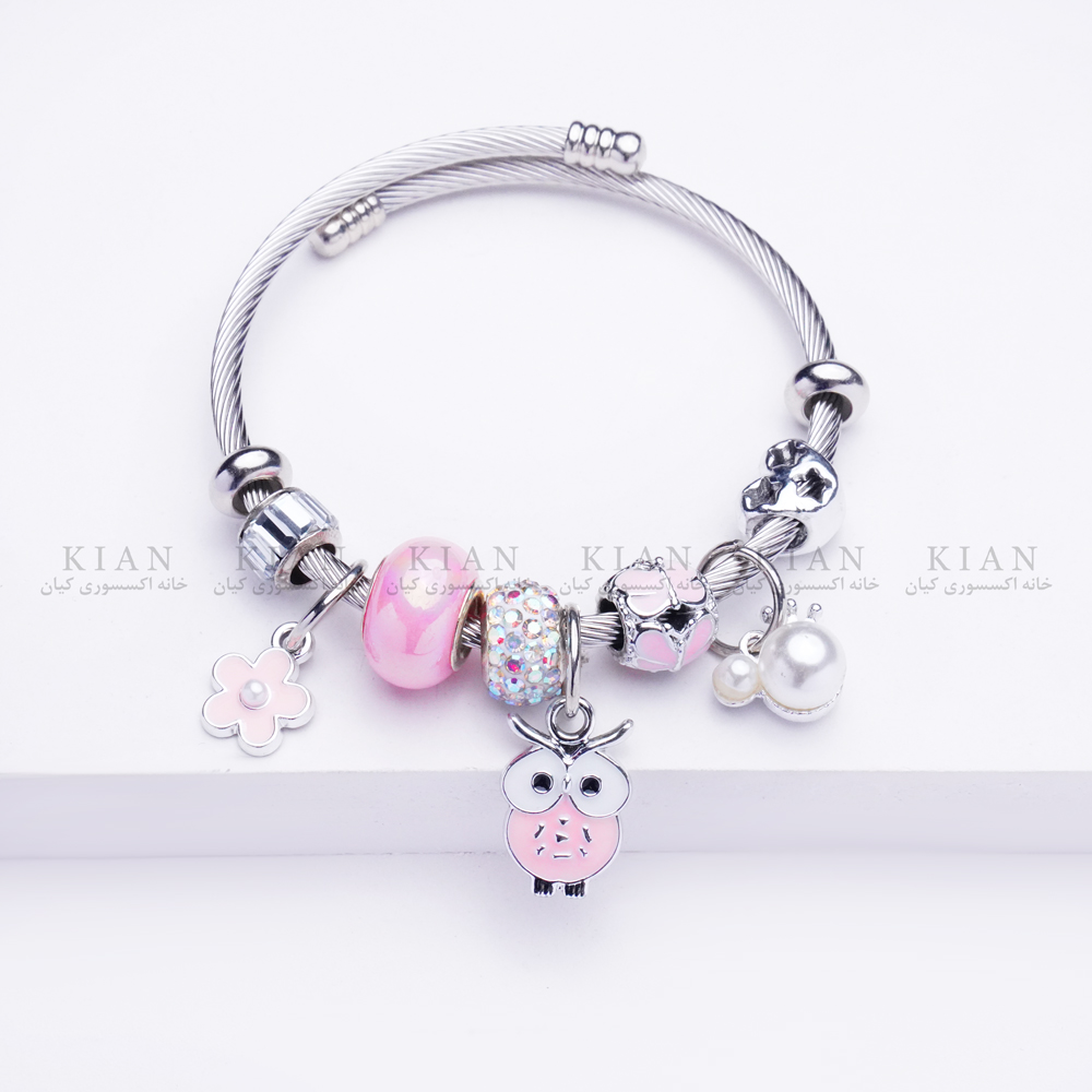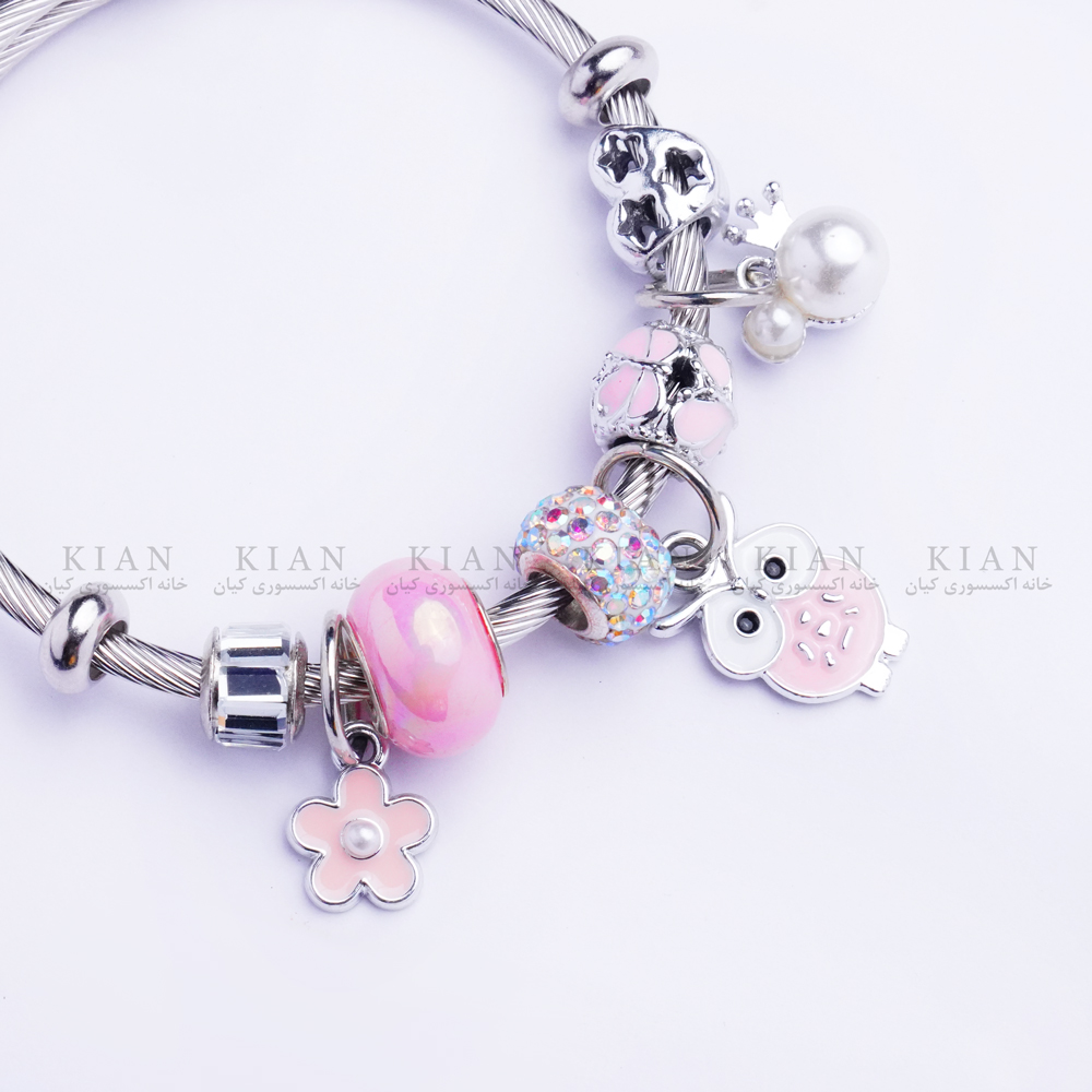 دستبند پاندورا جغد صورتی از مجموعههای خاص و پرطرفدار خانه اکسسوری کیان است. طراحی فانتزی با آویز جغد نگیندار و مهرههای صورتی درخشان، جلوهای دلنشین و متفاوت ایجاد کرده است. این دستبند نمادی از هوش و ظرافت بوده و برای استایلهای دخترانه و هدیه دادن انتخابی فوقالعاده محسوب میشود. ترکیب رنگ صورتی و نقرهای، جذابیت آن را دوچندان کرده است.