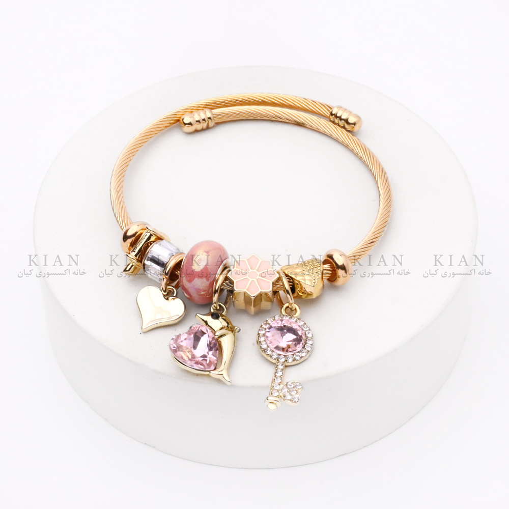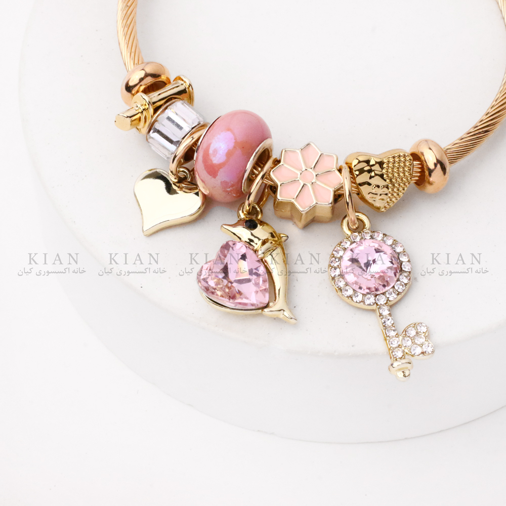 دستبند پاندورا دلفین طلایی یکی از زیباترین و لطیفترین مدلهای فانتزی در مجموعه زیورآلات خانه اکسسوری کیان است. این دستبند با ترکیب جذاب مهرههای صورتی، طلایی، نگیندار و آویزهای مینیمال، حس لطافت، شادی و آرامش دریایی را به استایل شما اضافه میکند.