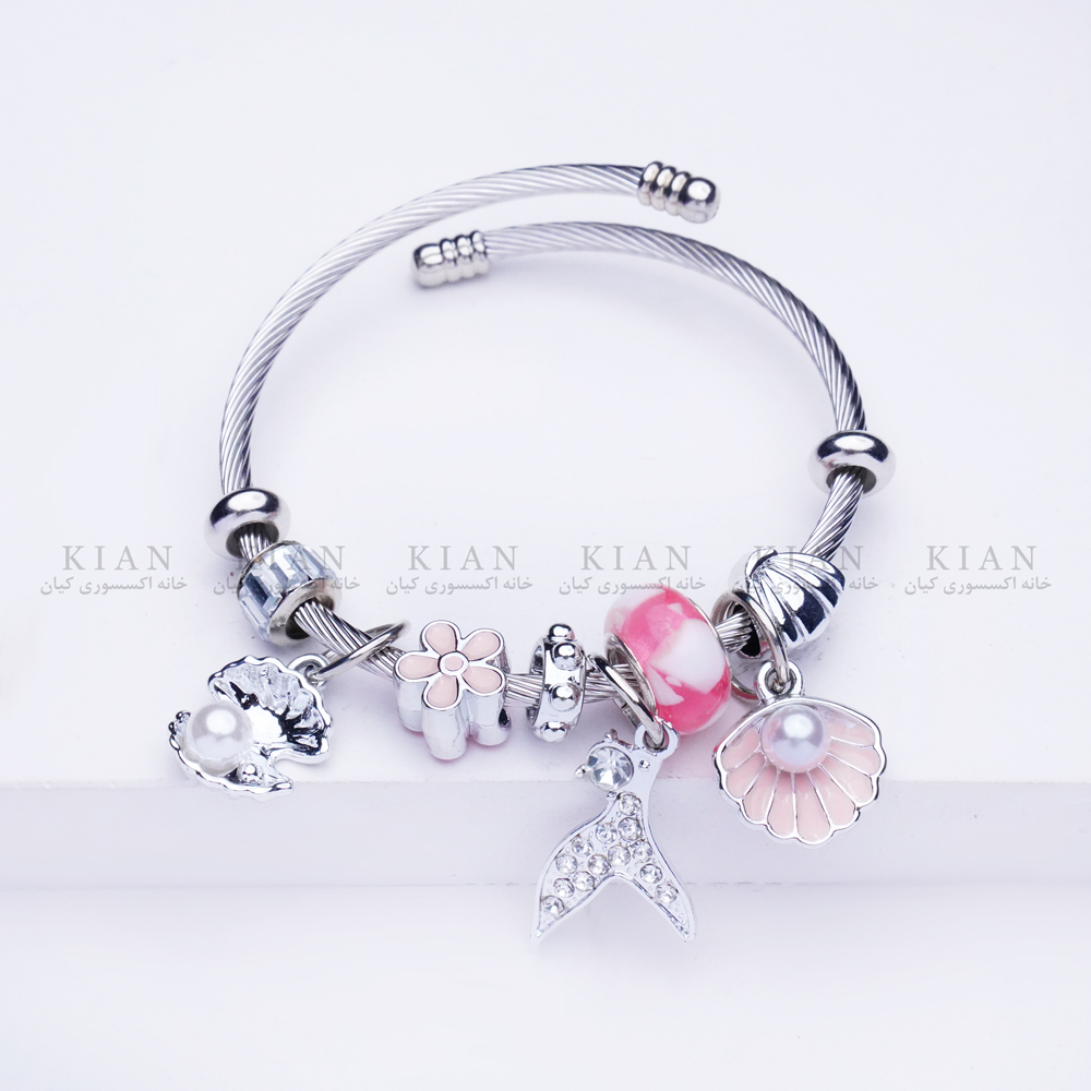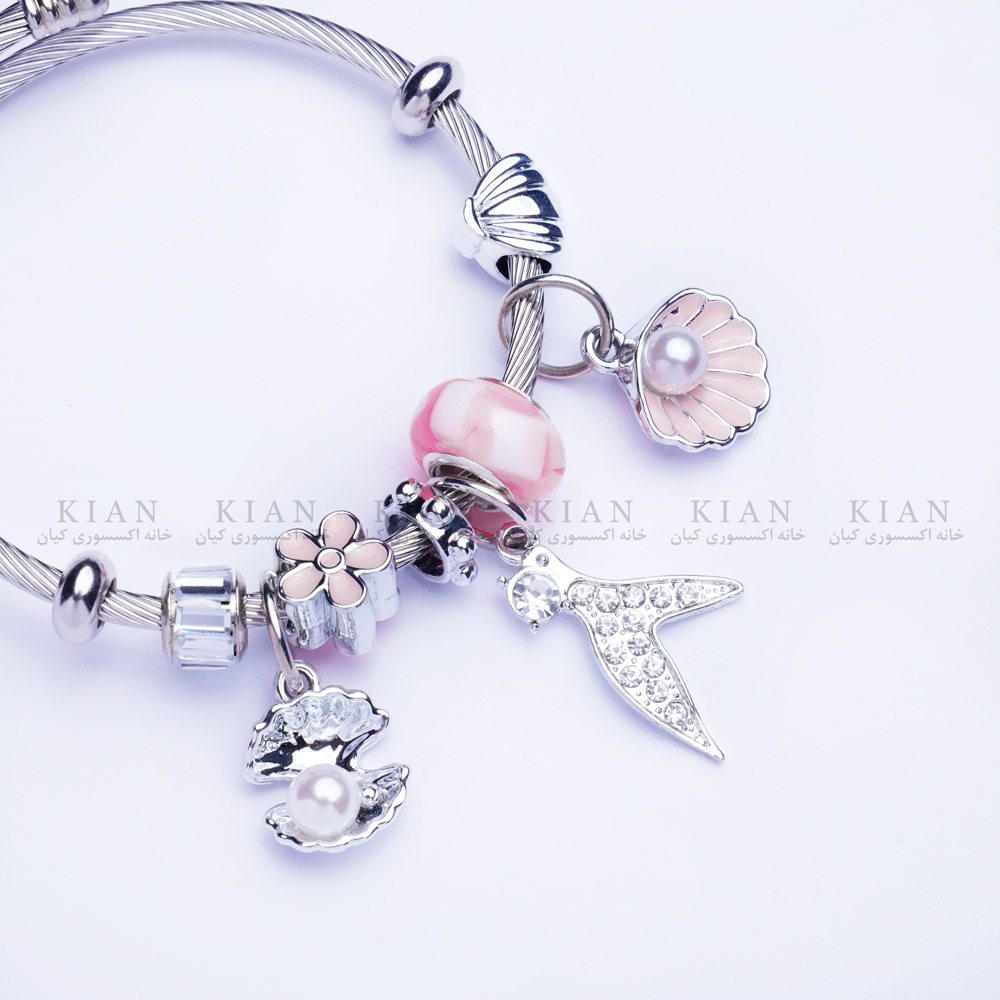 دستبند پاندورا صدف و مروارید یکی از مدلهای خاص و ظریف خانه اکسسوری کیان است. طراحی الهامگرفته از دریا با ترکیب آویز صدف، مروارید و مهرههای براق، جلوهای آرامشبخش و شیک ایجاد کرده است. این دستبند انتخابی ایدهآل برای استایلهای تابستانی و هدیهای خاص برای دوستداران طرحهای فانتزی و مرواریدی محسوب میشود.