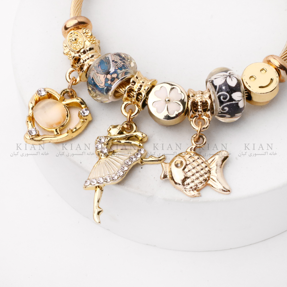 دستبند پاندورا طلایی رقص فرشته یکی از ظریفترین و خاصترین مدلهای پاندورا در مجموعه خانه اکسسوری کیان است؛ مدلی که با آویزهای فرشته و قلب، نماد لطافت، عشق و زیبایی را در یک طراحی هماهنگ کنار هم قرار داده است.
