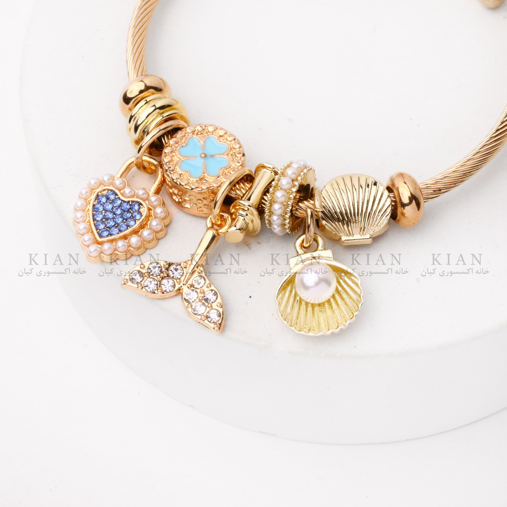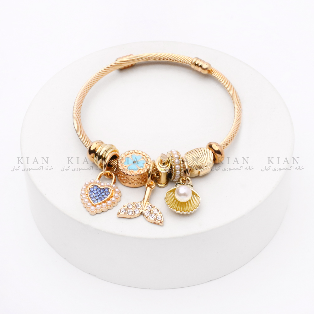 دستبند پاندورا طلایی قلب مرواریدی