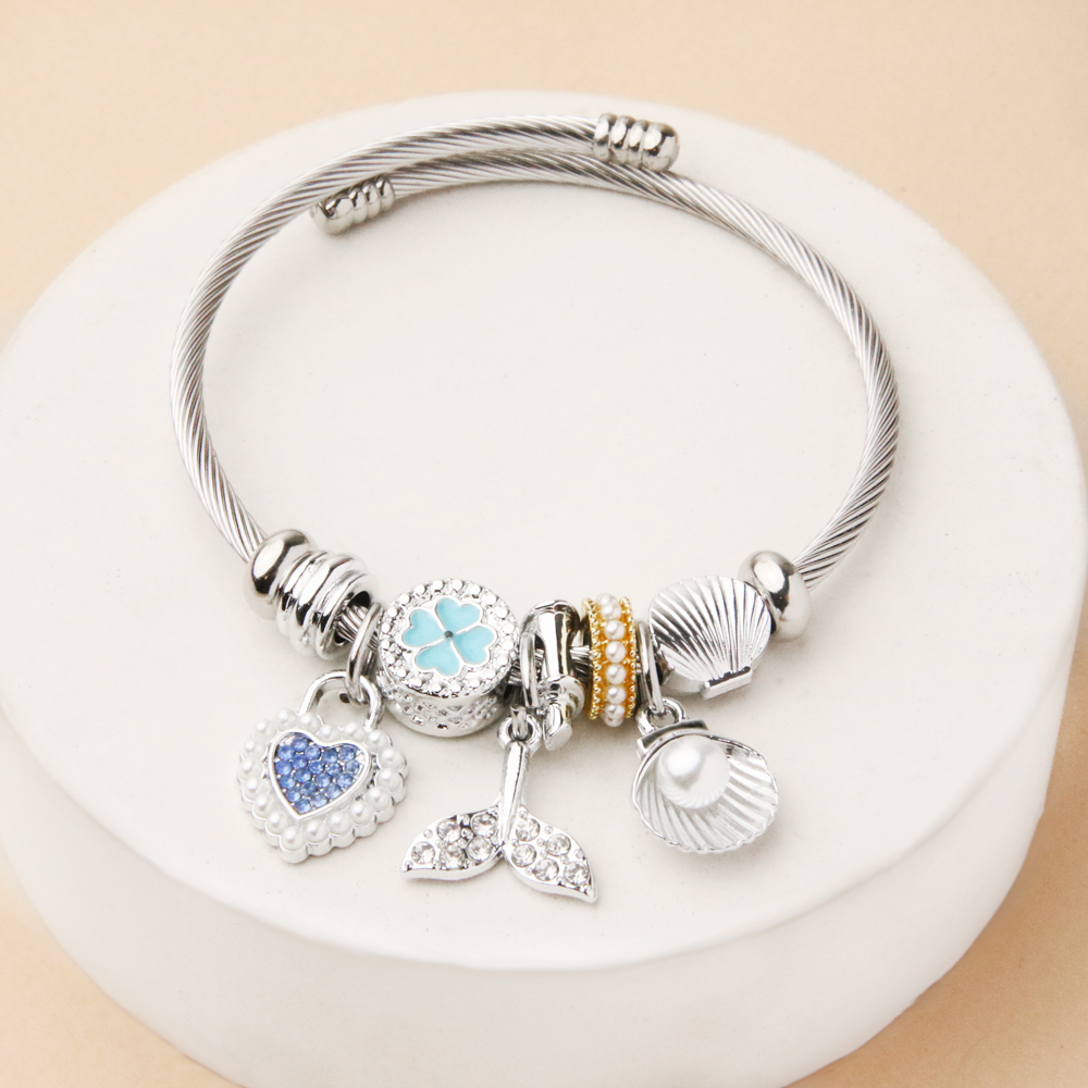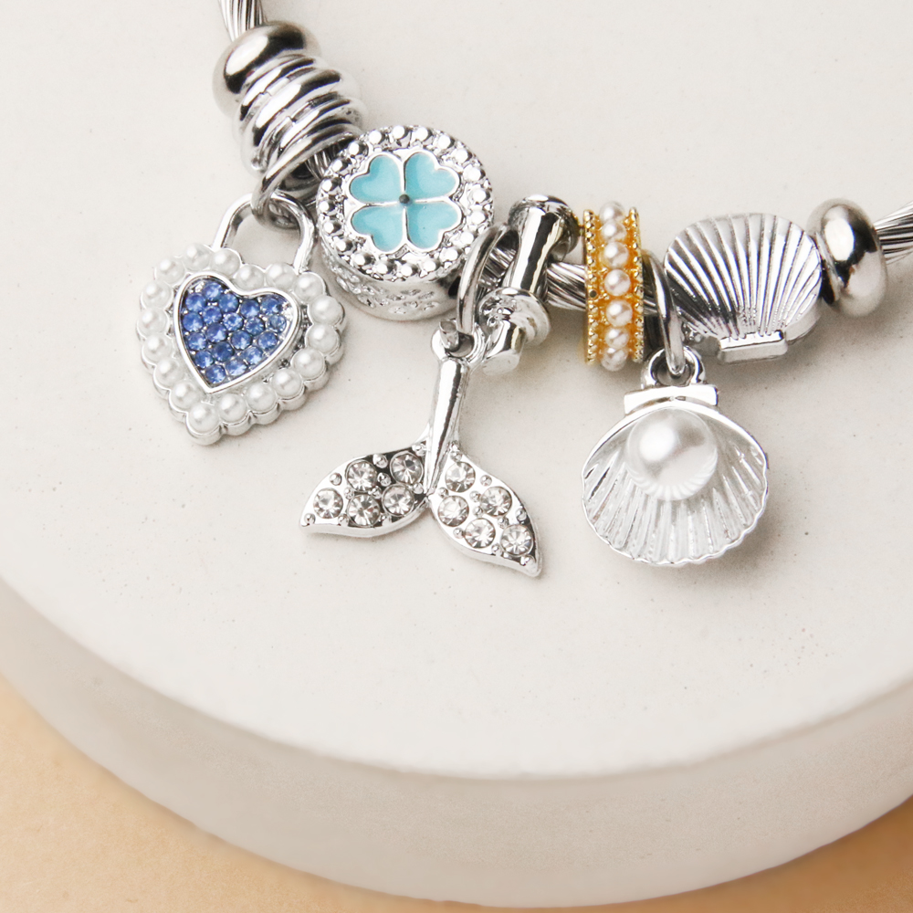 دستبند پاندورا قلب آبی مرواریدی