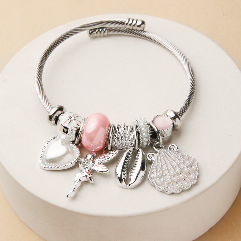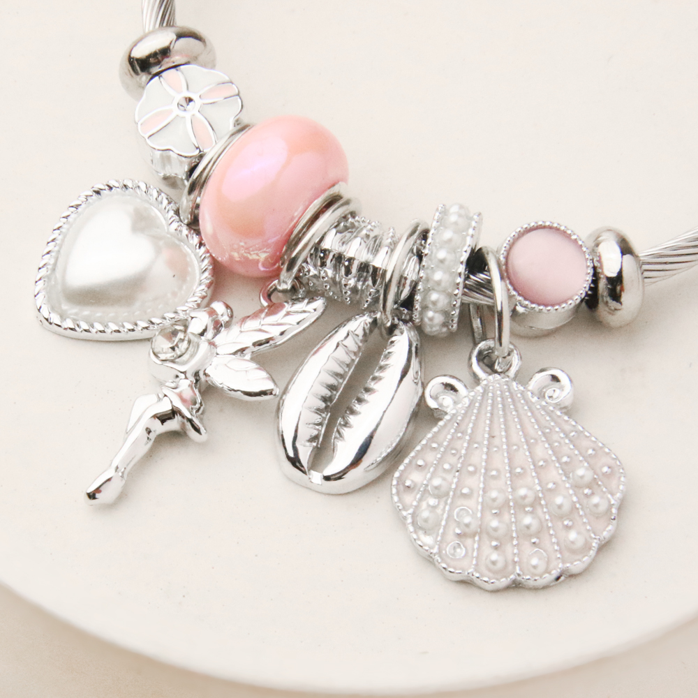 ترکیب رنگ سفید ملایم با بدنه نقرهای براق، این دستبند را به انتخابی ایدهآل برای استفاده روزمره یا هدیه دادن به عزیزان تبدیل کرده است. طراحی پاندورایی آن باعث میشود بهراحتی با سایر اکسسوریها ست شود و استایلی ساده اما خاص ایجاد کند.