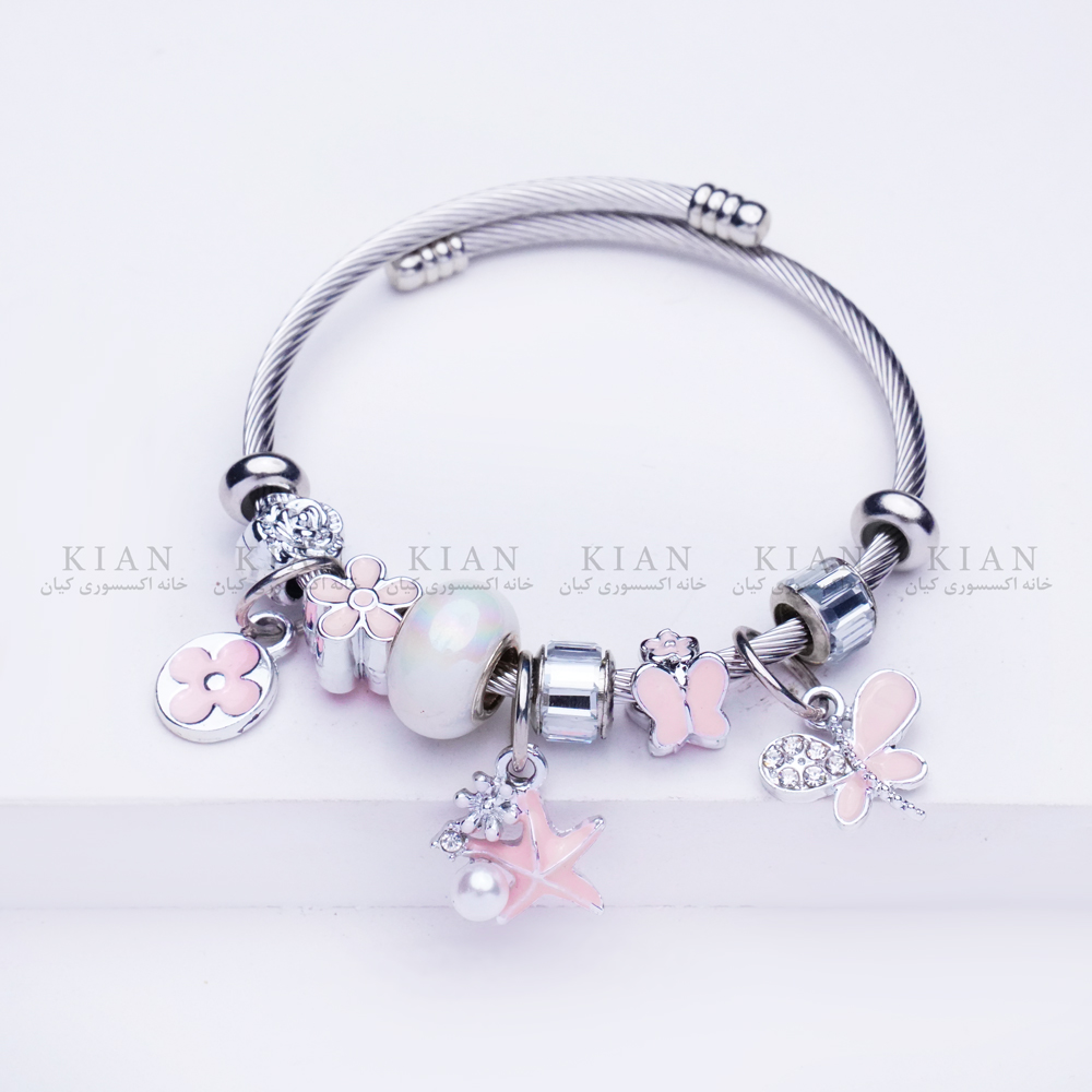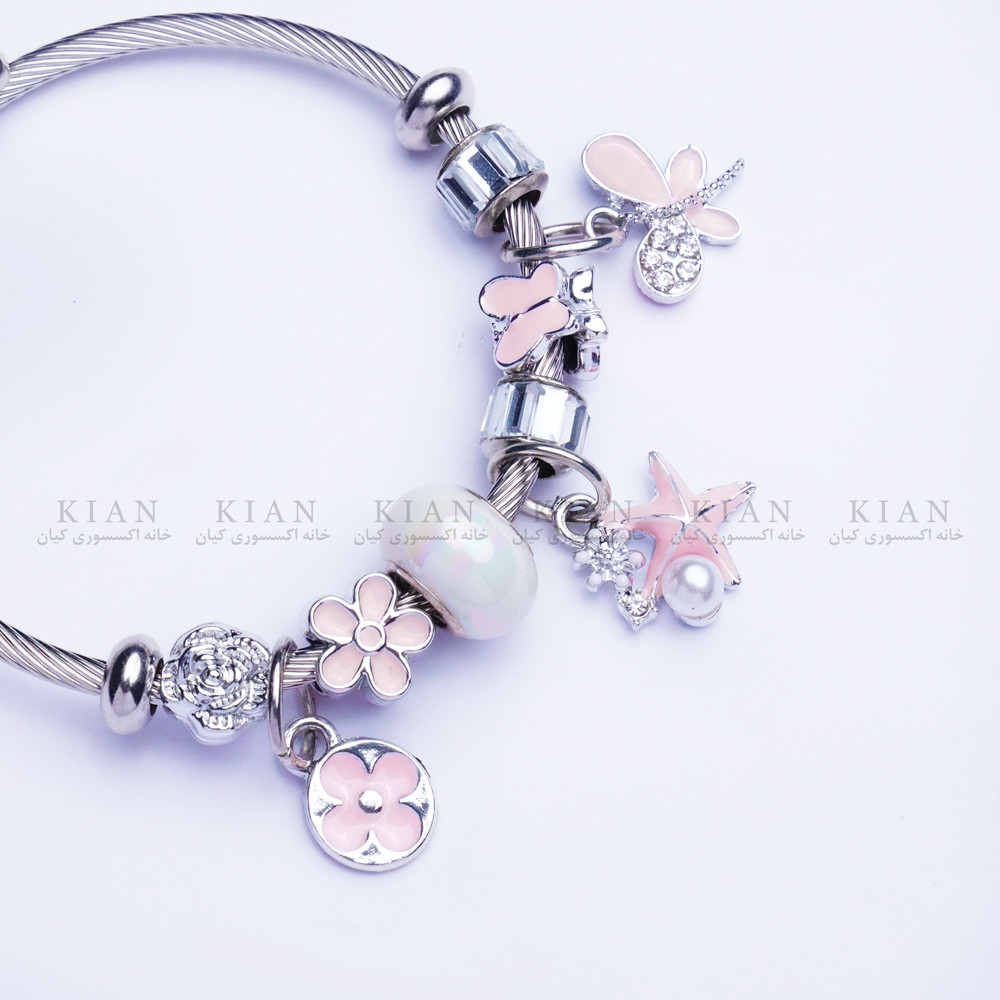 دستبند پاندورا ونکلیف صورتی از طراحیهای خاص و پرطرفدار خانه اکسسوری کیان است. ترکیب مهرههای فلزی با آویزهای گلمانند ونکلیف در رنگ صورتی ملایم، جلوهای زنانه و لطیف ایجاد کرده که برای استایلهای روزمره و مجلسی بسیار جذاب است. این دستبند انتخابی عالی برای کسانی است که به دنبال اکسسوریهای فانتزی، شیک و الهامگرفته از برندهای لوکس هستند.
