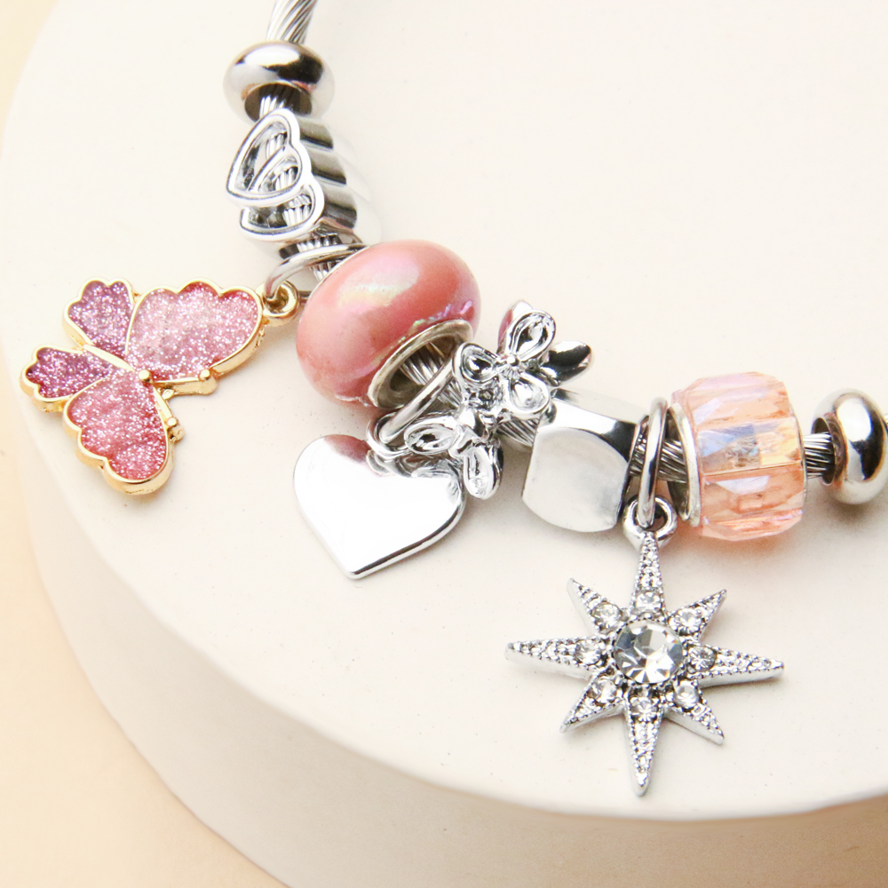 در خانه اکسسوری کیان، دستبند پاندورا پروانه صورتی و ستاره با دقت در انتخاب طرح و هماهنگ با ترندهای روز عرضه شده تا ترکیبی از لطافت، زیبایی و حس خوب را به استایل شما اضافه کند.