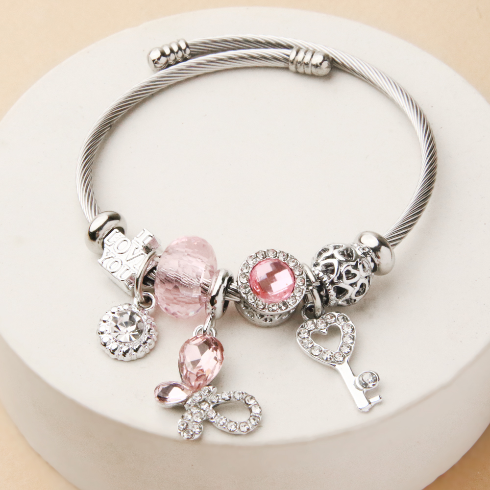 دستبند پاندورا پروانه نگیندار از مجموعه زیورآلات فانتزی و محبوب خانه اکسسوری کیان، انتخابی ظریف و چشمنواز برای استایلهای لطیف و دخترانه است. طراحی زیبا با آویزهای پروانه و نگینهای درخشان، نمادی از آزادی، تغییر و زیبایی درونی را به تصویر میکشد.
