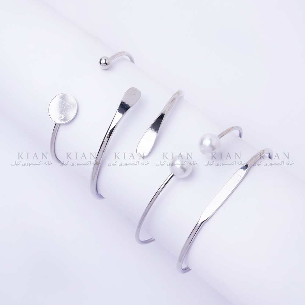 پک دستبند النگویی نقره‌ای از مجموعه زیورآلات خاص خانه اکسسوری کیان، انتخابی درخشان برای افرادی است که به استایل‌های ظریف و مینیمال علاقه دارند. این ست شامل چند دستبند باریک و خوش‌فرم نقره‌ای است که در کنار هم ترکیبی شیک، درخشان و زنانه را به‌وجود می‌آورند.