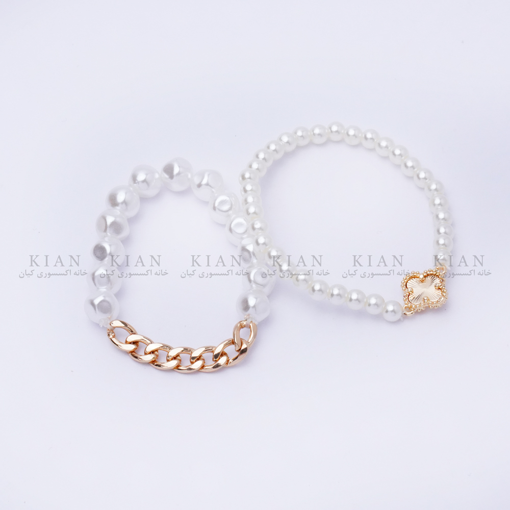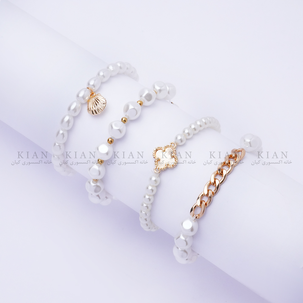 پک دستبند مرواریدی طلایی از مجموعه زیورآلات خاص خانه اکسسوری کیان، ترکیبی لطیف از درخشش مروارید و زیبایی رنگ طلایی است. این ست شامل چند دستبند ظریف با مهره‌های مرواریدی براق و جزئیات طلایی‌ست که در کنار هم جلوه‌ای شیک، زنانه و همیشه‌مدرن ایجاد می‌کنند.