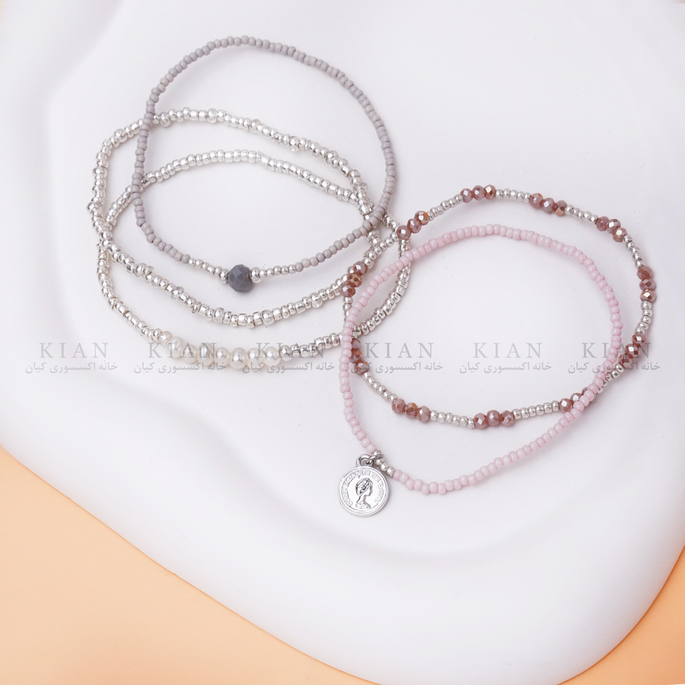جنس دستبندها از متریال ضد حساسیت و بادوام است و طراحی سبک و کشی آنها استفاده روزانه را آسان و راحت کرده است. رنگ نقرهای خنک و صیقلی این مجموعه، با هر رنگ لباسی هماهنگ میشود و استایلی تمیز و همیشهبهروز ایجاد میکند.