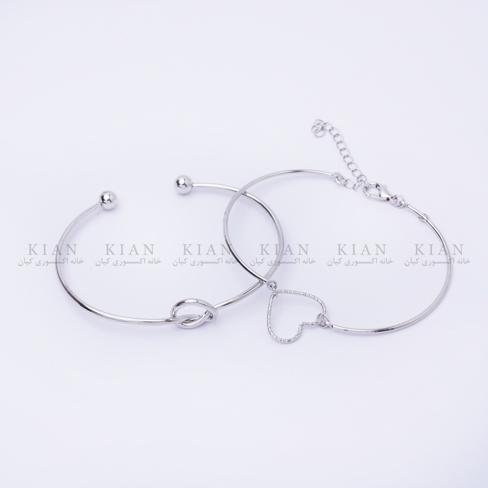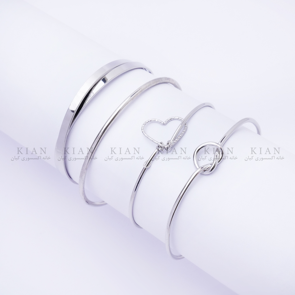 پک دستبند نقره ای النگویی قلبی از مجموعه زیورآلات خاص خانه اکسسوری کیان، جلوهای عاشقانه و درخشان به دستان شما میبخشد. این ست شامل چند دستبند ظریف نقره ای با طراحیهای متفاوت و یک النگوی قلبی زیبا در مرکز است که نماد عشق، لطافت و ظرافت زنانه محسوب میشود.