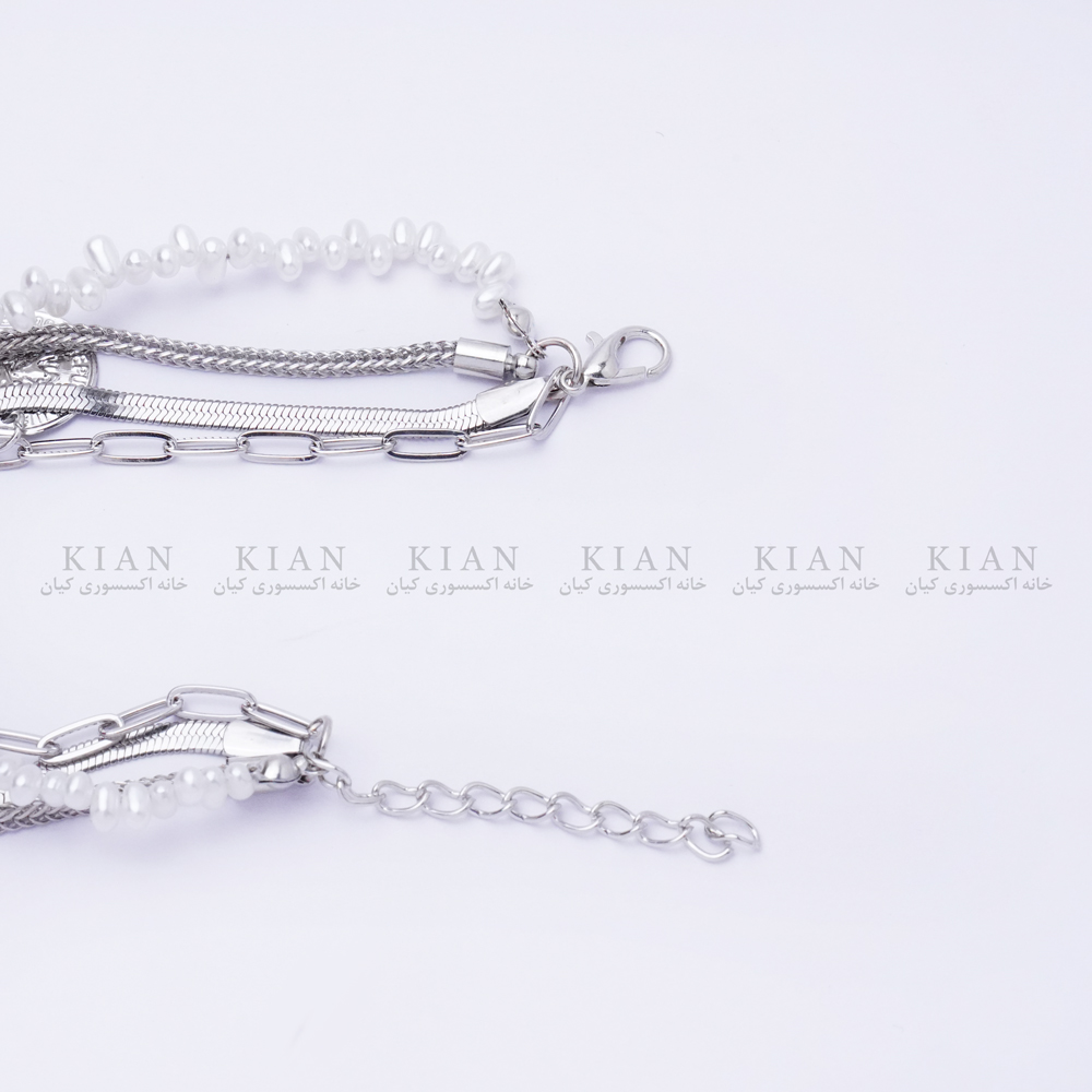 پک دستبند نقره ای سکه ای از مجموعه زیورآلات خاص خانه اکسسوری کیان، ترکیبی چشم‌نواز از سادگی، درخشش و ظرافت است. این ست شامل چند دستبند هماهنگ با طراحی‌های زنجیری، کریستالی و سکه‌ای است که در کنار هم جلوه‌ای لوکس و متفاوت به دستان شما می‌بخشند.