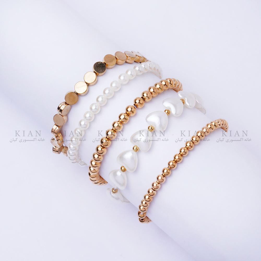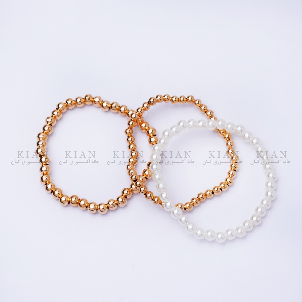 پک دستبند کشی طلایی از مجموعه زیورآلات خاص خانه اکسسوری کیان، انتخابی ایده‌آل برای استایل‌های دخترانه، مینیمال و روزمره است. این ست شامل چند دستبند کشی ظریف با ترکیب دانه‌های طلایی، سفید و مرواریدی است که در کنار هم جلوه‌ای درخشان و هماهنگ ایجاد می‌کنند.