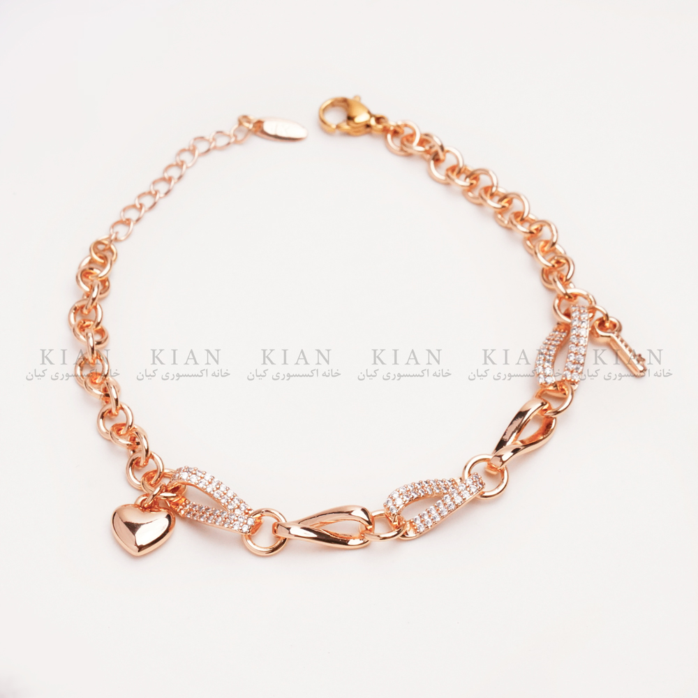 دستبند آویز قلب و قفل نگین دار زیبا با آویز قلبی و قفل نگین کاری شده، ترکیبی دلنشین از احساس و جذابیت را به همراه دارد.