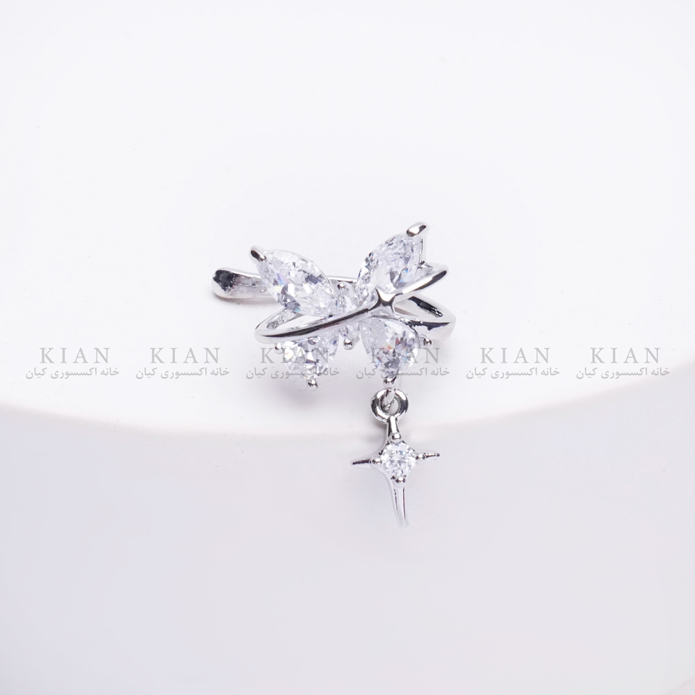 این ایرکاف با طراحی ظریف پروانه و آویز نقره ای براق، جلوه ای زنانه و لطیف به استایل شما می بخشد. بدون نیاز به سوراخ اضافی، به راحتی روی گوش قرار می گیرد و می تواند هم در مهمانی ها و هم در استایل روزمره، به نقطه ی درخشان ظاهر شما تبدیل شود.