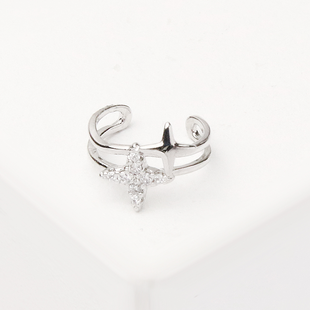 این ایرکاف با طراحی باز و فرم ستاره ای ساخته شده و جلوهای درخشان و چشمگیر ایجاد میکند. بدنه نقرهای براق آن، حالتی بسیار تمیز و امروزی دارد و همین باعث میشود با هر مدل گوشواره یا استایل روزانه بهخوبی ست شود.