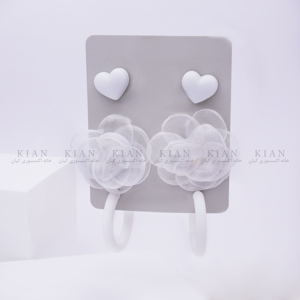 پک گوشواره توری سفید مات از برند خانه اکسسوری کیان، نمادی از لطافت و سادگی در کنار طراحی فانتزی و چشمنواز است. ترکیب قلبهای سفید در قسمت بالایی و گلهای توری ظریف با رنگ مات، جلوهای آرام، خاص و کاملاً دخترانه به این گوشوارهها میبخشد.