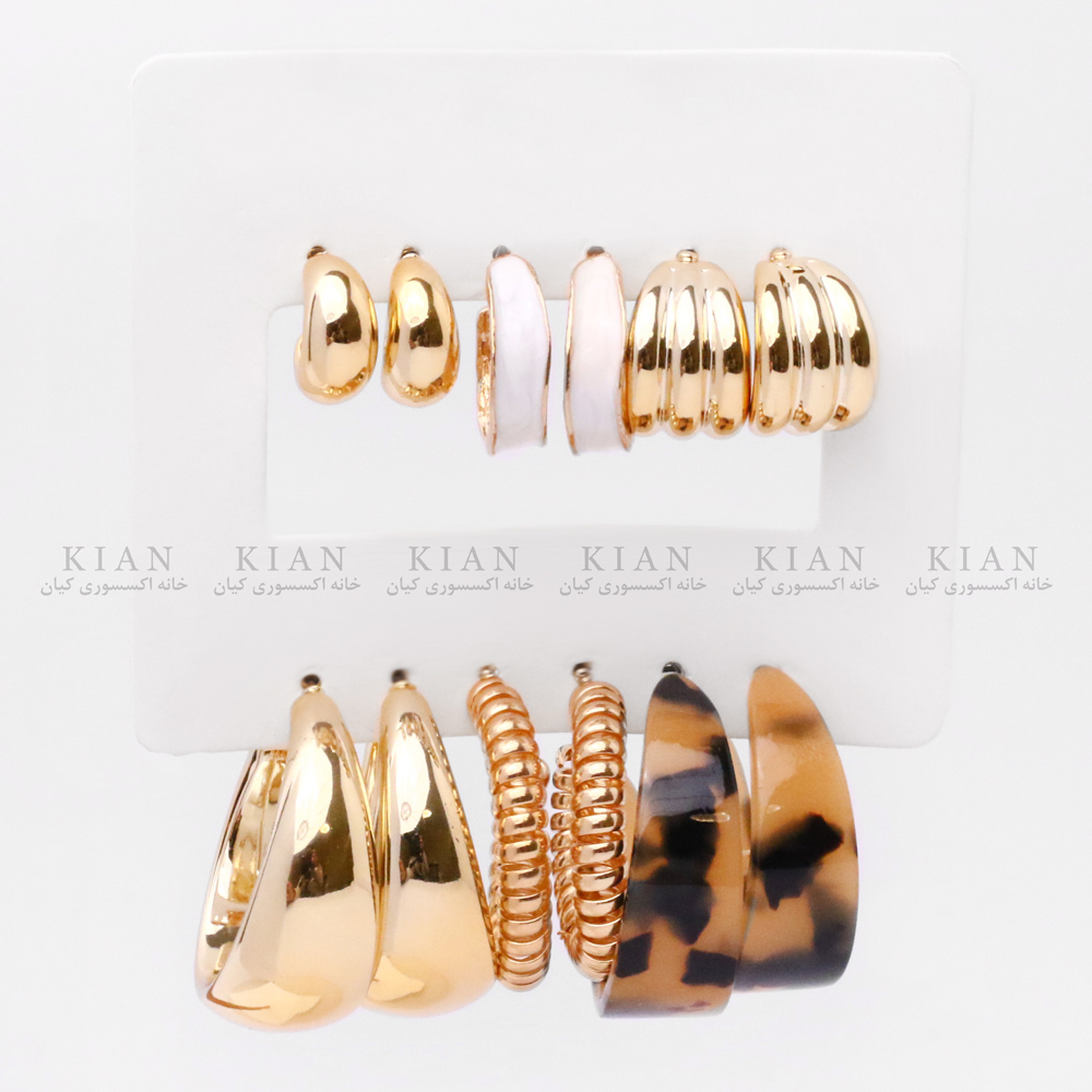 این پک شامل چند مدل متنوع از گوشواره‌های حلقه‌ای است از مدل‌های مینیمال و ساده گرفته تا طرح‌های بافت‌دار و پلنگی تا بتوانید بسته به موقعیت، استایل مورد نظرتان را انتخاب کنید. رنگ طلایی درخشان و متریال ضد حساسیت، در کنار قفل‌های ایمن و وزن سبک، راحتی و دوام بالایی را تضمین می‌کند.