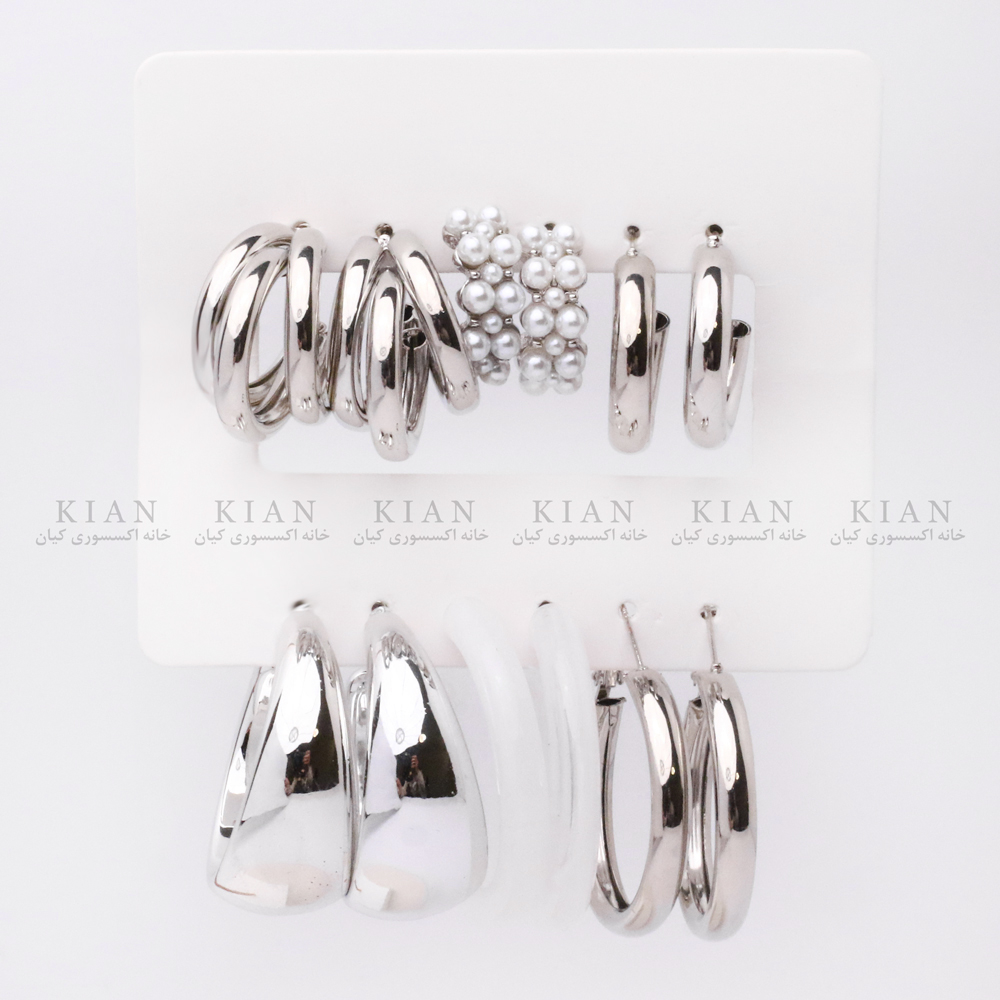 پک گوشواره حلقه ای نقره ای درشت از برند خانه اکسسوری کیان، انتخابی شیک و جسورانه برای بانوانی است که به دنبال اکسسوری‌های شاخص و درخشان هستند. این پک شامل چند مدل گوشواره با طراحی‌های متنوع و اندازه‌های متفاوت است که همگی با روکش نقره ای براق، جلوه‌ای لوکس و مدرن به استایل شما می‌بخشند.