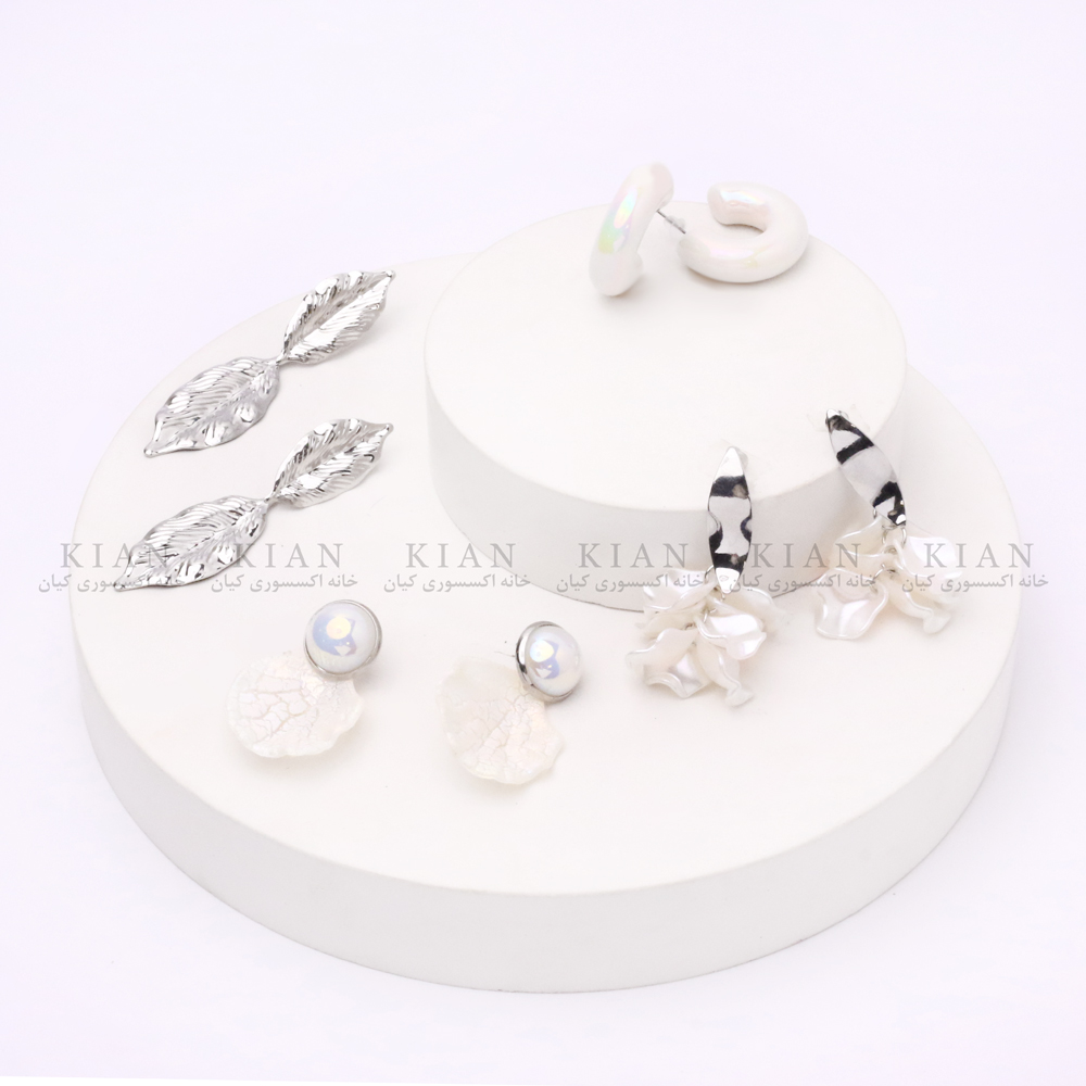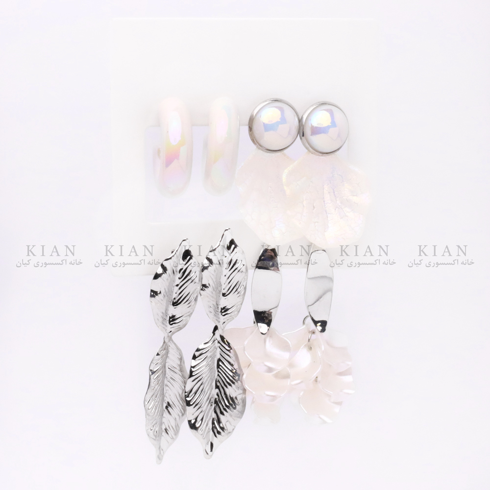طراحی این مجموعه شامل چند مدل متنوع از گوشوارههاست از مدلهای کلاسیک گرفته تا طرحهای فانتزی و صدفدار تا بتوانید بسته به موقعیت و سلیقه خود، استایلی هماهنگ و زیبا بسازید. رنگ نقرهای درخشان در کنار بافت صدفی طبیعی، حس لطافت و درخشندگی را همزمان منتقل میکند.
